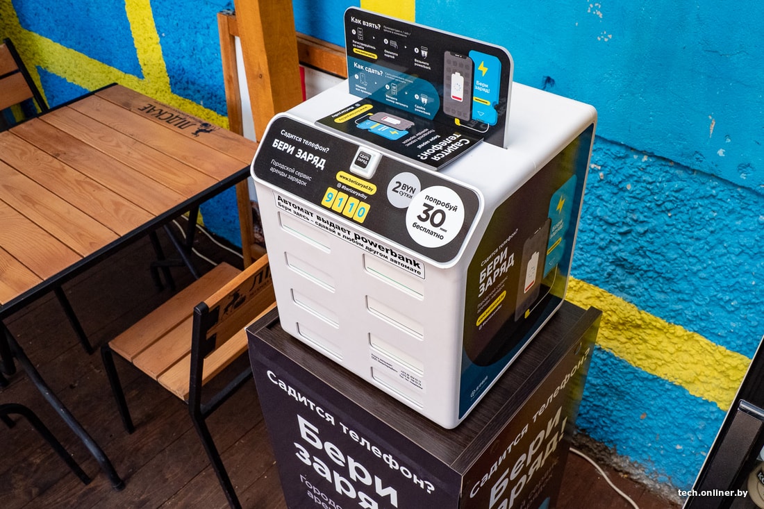 В Минске появились первые автоматы «батарейкошеринга» — сервиса, позволяющего зарядить смартфон в городе, а в перспективе брать аккумулятор в одном «вендинговом» автомате, а возвращать в другой. Как рассказал Onliner один из владельцев сервиса в Беларуси, в первой партии завезено 20 таких устройств, их установка только началась.