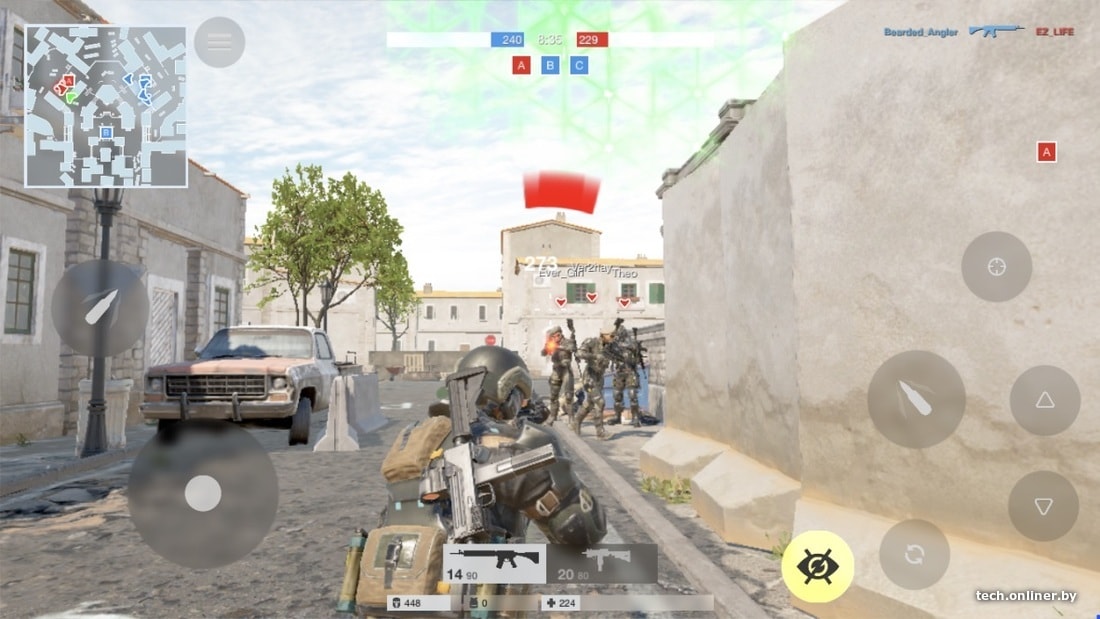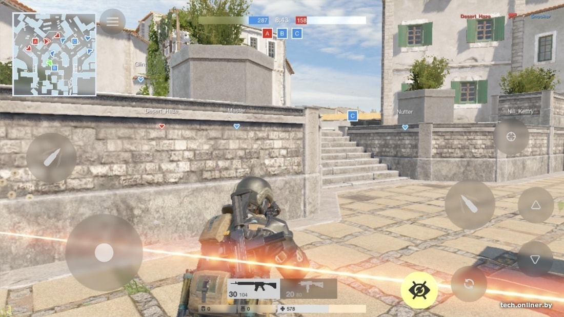 Иван Воронов: Нам повезло: мы делаем не первый мобильный шутер, и многие моменты касательно стрельбы, передвижения камеры уже решены — пусть не совсем очевидными, но очень эффективными способами. Да, мы учились у других разработчиков. Смартфоны и планшеты сталкиваются с теми же проблемами, которые были у шутеров на консолях. Ведь мышка — очень точный манипулятор, а с джойстиком, например, ты не можешь отклонить стик дважды на один и тот же угол. С чем-то похожим мы встречаемся на мобильных устройствах, поэтому взяли многие моменты из приставочных шутеров.
