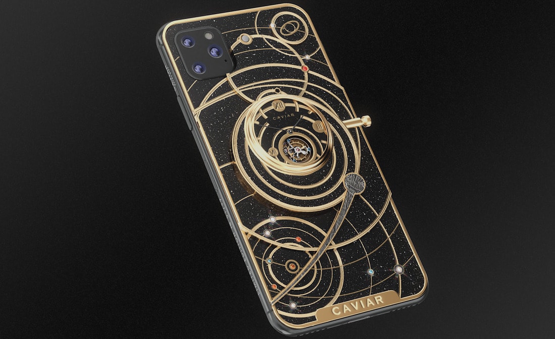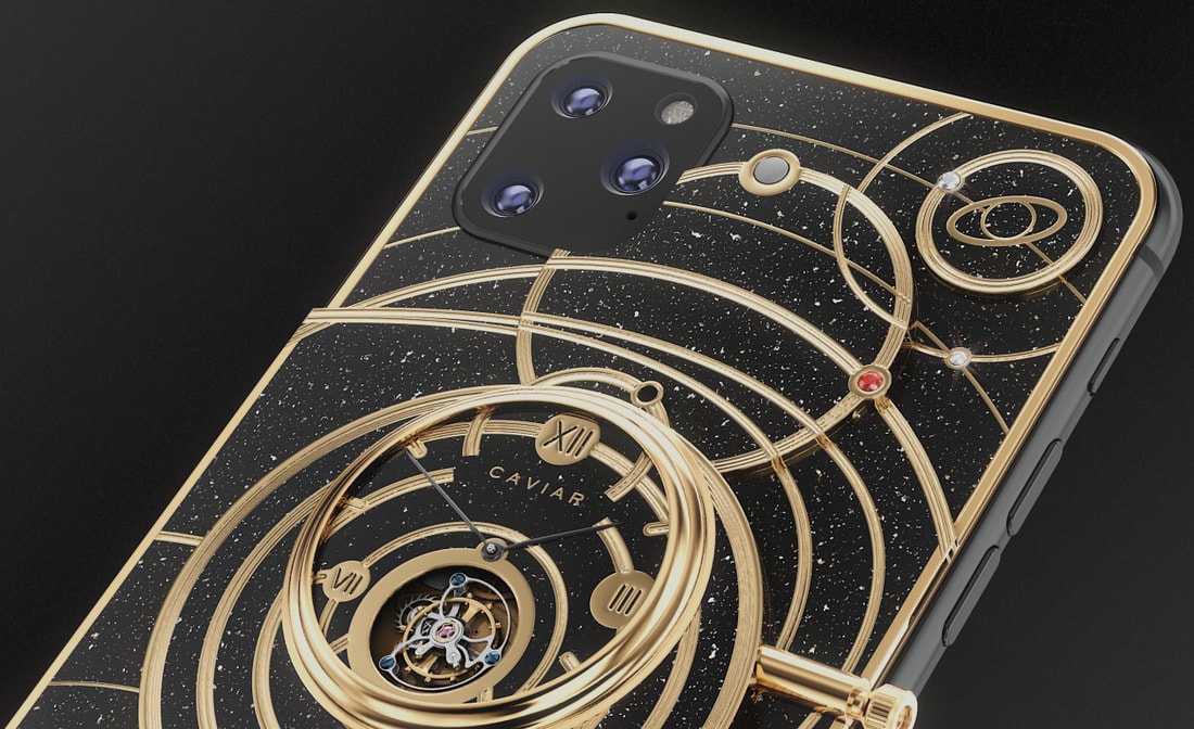 Российский бренд люксовых смартфонов Caviar анонсировал очередной девайс «не для всех». Это еще не представленный официально iPhone 11, в оформлении корпуса которого используются вполне обычные бриллианты, рубины, топазы, а также фрагменты лунного грунта, метеорита и космического корабля. Завершает картинку турбийон в центре корпуса.