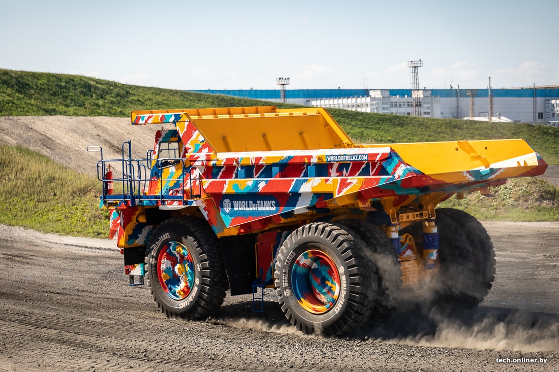 Макетом дизайна занимались специалисты Wargaming, а раскрашивали самосвал профессиональные художники вместе с сотрудниками БелАЗа, которые играют в World of Tanks.