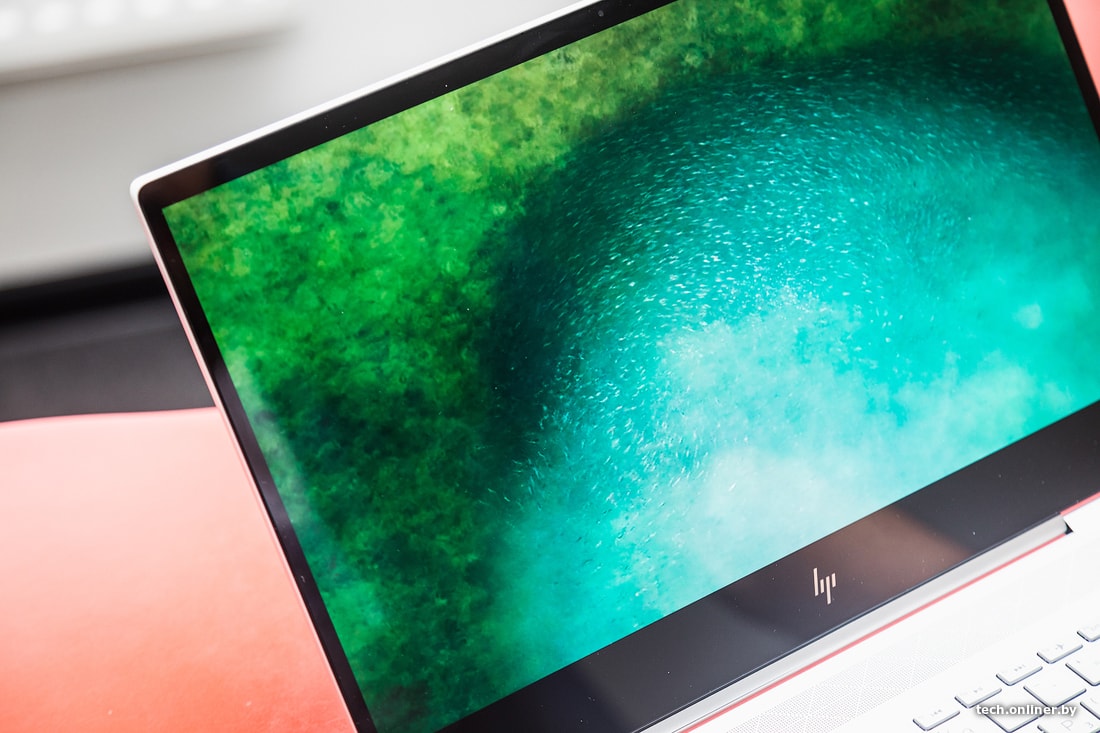 Экран HP ENVY впечатляет обилием цветов и четкостью картинки. В темных сценах особенно заметно, насколько настоящий и глубокий черный цвет, а не светящийся серый, как в IPS. У дисплея колоссальная контрастность и широкие углы обзора, а яркость составляет 400 нит. Показатель этот меньше, чем у самых топовых IPS-панелей, но все равно приличный. При этом регулировка яркости производится в широком диапазоне, что позволяет подстроиться под разнообразные условия освещения и просмотр контента. Покрытие экрана выполнено из стекла, а не из пластика, что наконец-то убрало эффект «замыливания» и прибавило четкости деталям картинки.