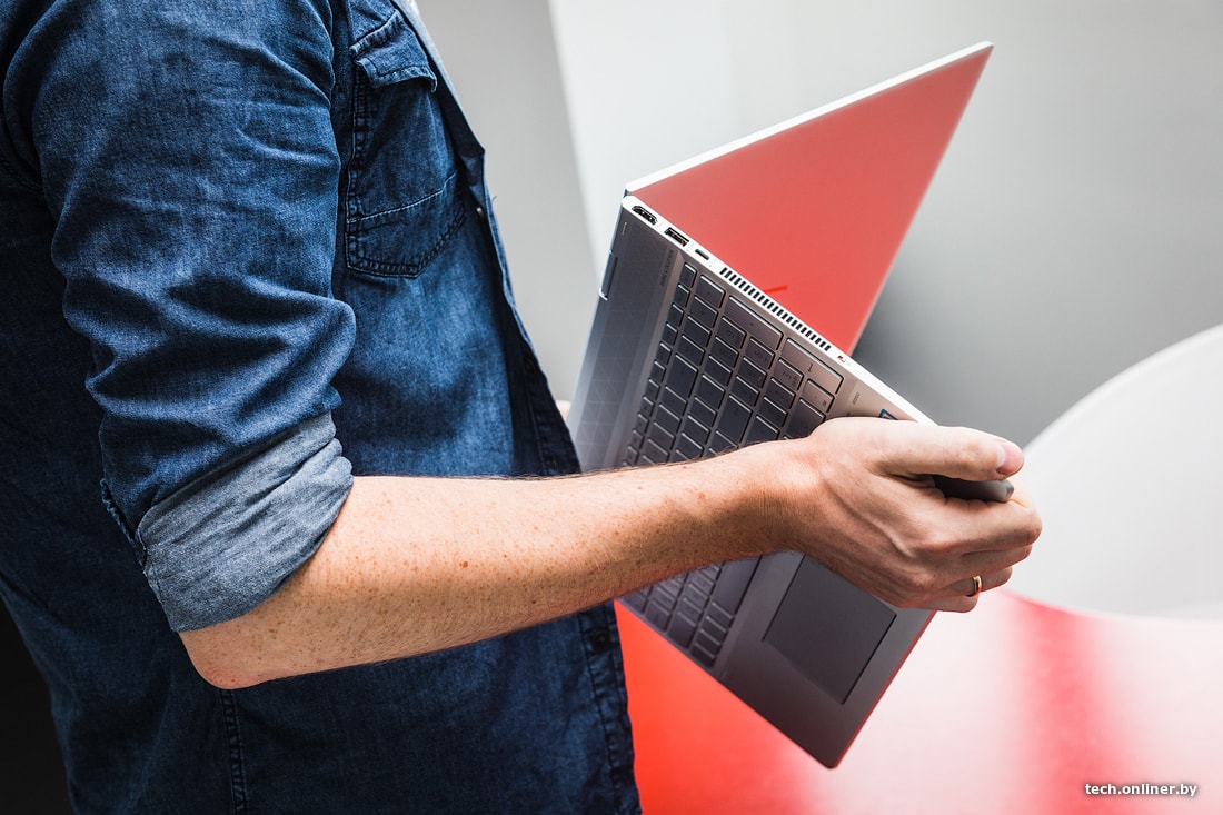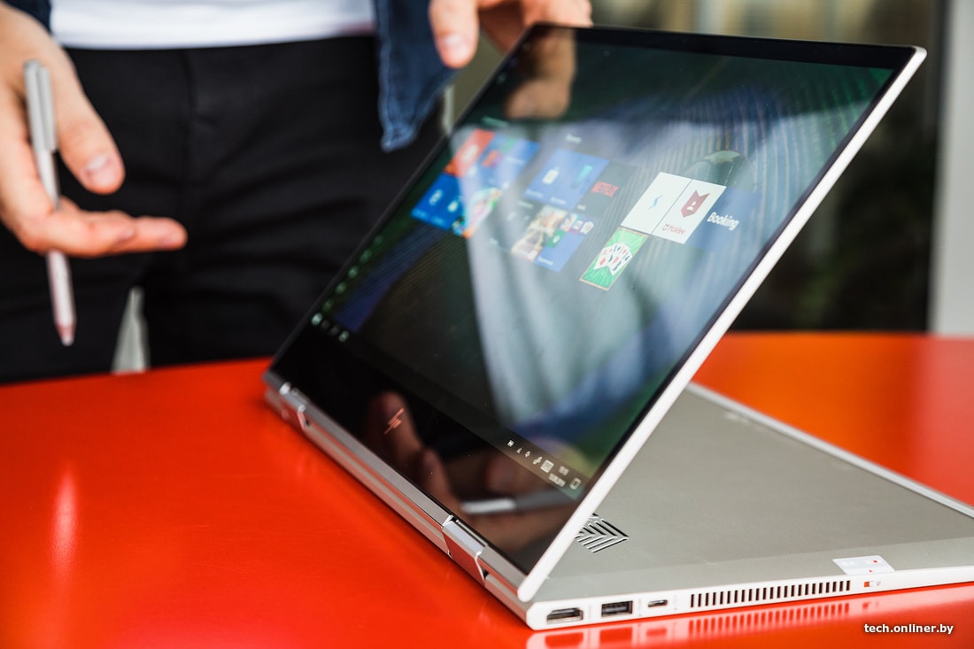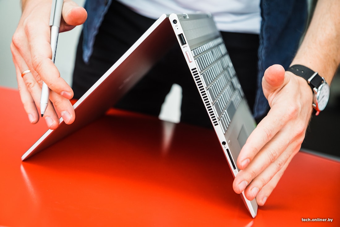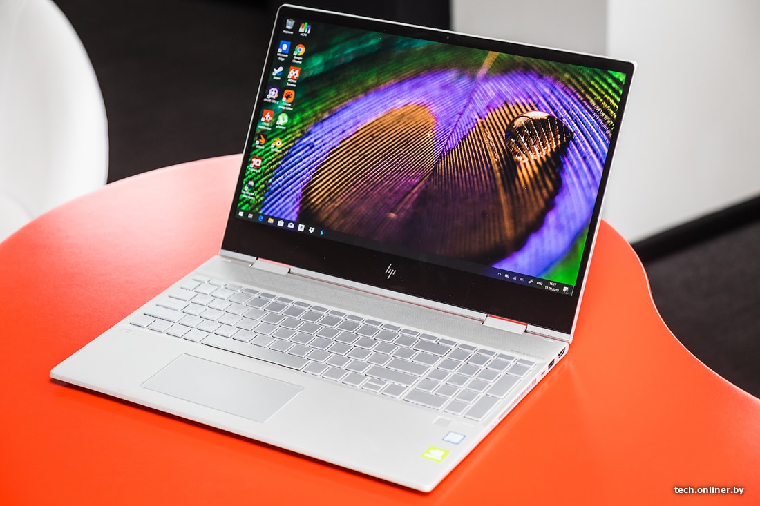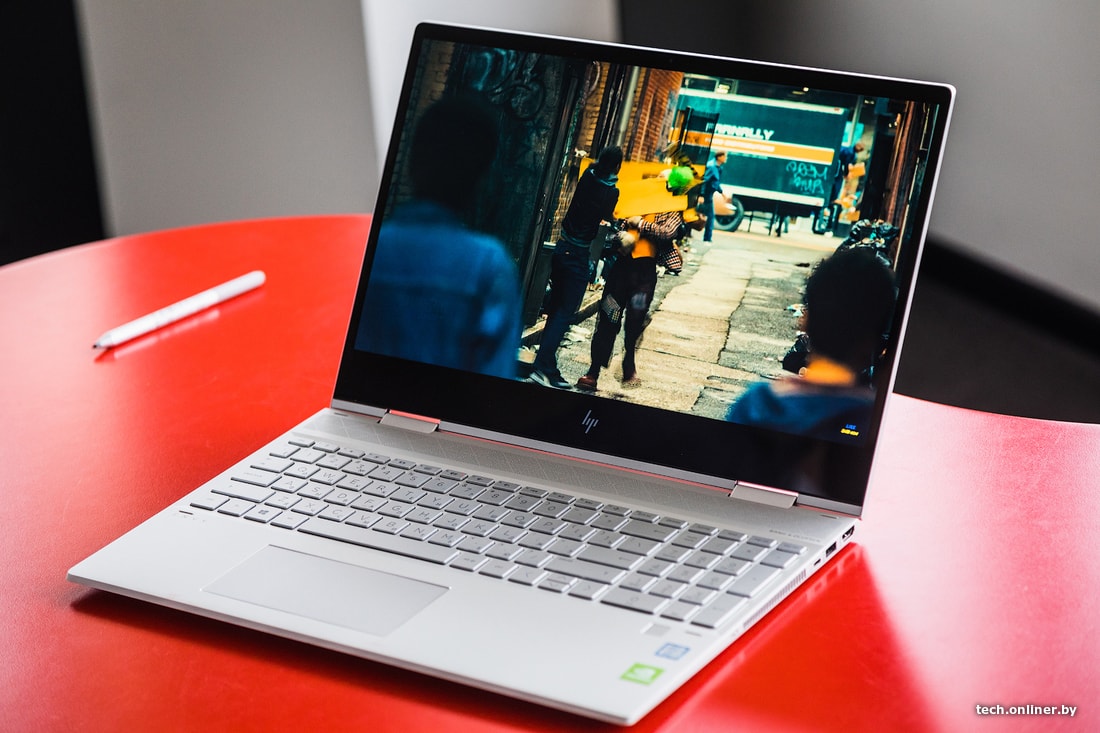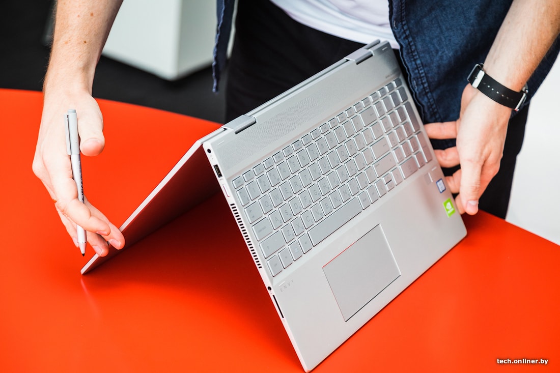 К сенсорному экрану ноутбука можно относиться по-разному. Бесспорна тут одна вещь: сенсорный экран предоставил дополнительные возможности для взаимодействия с ноутбуком. Поворотная клавиатура и комплектный стилус в этом еще больше помогли. Рукописные заметки распознавались вплоть до передачи ужасных особенностей почерка. Сперва было морально тяжело согнуть пополам ноутбук почти за 2000 долларов. Но потом даже находишь это забавным. HP ENVY можно ставить под любым углом и в любом положении. Например, в варианте «тента» можно показывать презентацию, эскизы, модели или графики своим коллегам. Ноутбук становится планшетом, если полностью сложить клавиатуру. В этом сценарии наконец-то пригодился режим «Планшет» в Windows 10.
