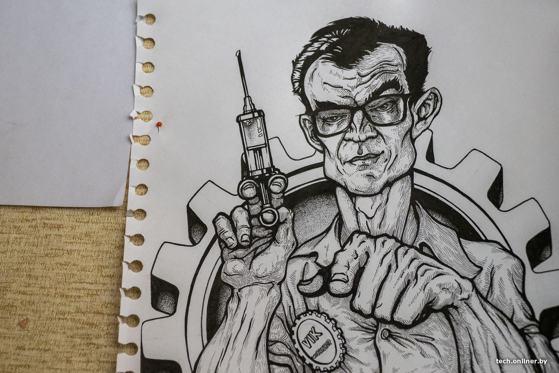 Если проект приходит со стороны (точнее, от человека, который хочет реализовать свою идею, но не знает как), Вик помогает с тем, чтобы получить нужную форму: «Я смотрю на человека и думаю: „Как, братец, к тебе это прилепить?“ Бывает, что в игровой выдуманный образ очень сложно вписать живого человека. Например, вот эта штука противоречит анатомии».