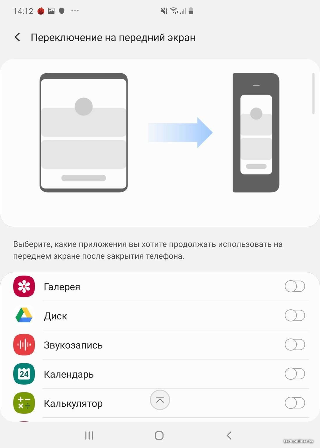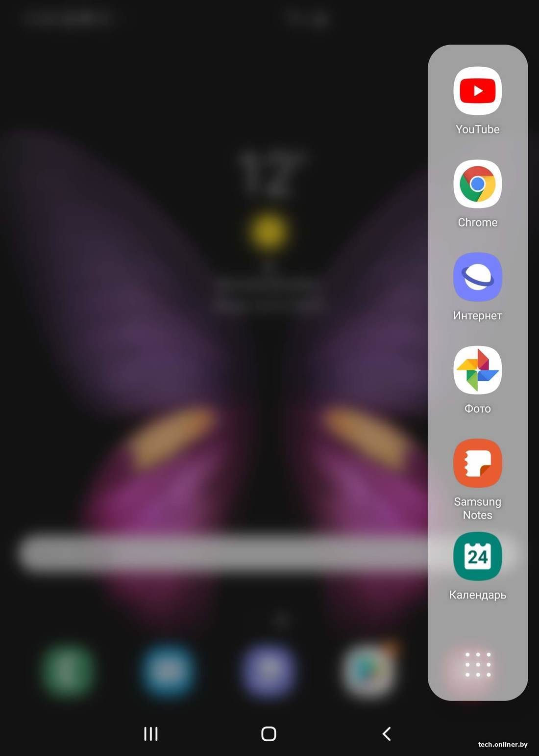 В целом, при работе с Galaxy Fold изгиб на экране беспокоит меньше всего. Намного больше недоумения вызывает несуразно мелкий внешний дисплей. Это такая вещь в себе. С одной стороны, хорошо, что есть режим Always On и вы всегда сможете увидеть какие-то уведомления, не раскрывая аппарат. Но если пытаться пользоваться внешним экранчиком Galaxy Fold как обычным смартфоном, то не получишь никакого удовольствия. Выходит, вам почти всегда надо раскрывать девайс. В сложенном состоянии он пригоден разве что для приема звонков. Для всего остального крайне желательно открыть телефон.