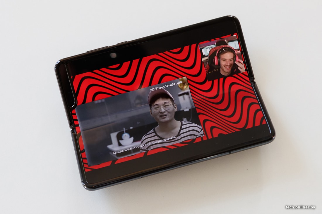 Так стоило ли все затевать ради самой главной «фишки» — раскладного дисплея? Наверное, да. Большой экран — это всегда хорошо. Конечно, технологии пока имеют ограничение. Так, изгиб посреди дисплея есть, виден, прощупывается и для перфекциониста может стать поводом выразить «фе». Блок с парой камер, уверен, в следующей модели уже не будет так откровенно отъедать полезную площадь экрана. А маленький фронтальный дисплей разрастется до полноразмерного, чтобы Galaxy Fold можно было использовать не только в качестве мини-планшета, но и как смартфон.