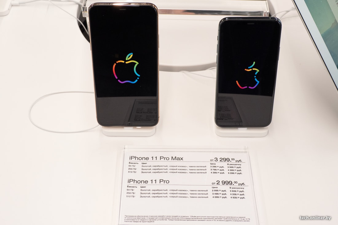 По большому счету, отличий этого магазина от других нет: все тот же единый стиль, наполированные девайсы красиво играют под ярким освещением и цены, на которые без слез не взглянешь. Так, iPhone 11 Pro Max в базовой версии на 64 ГБ стоит 3299 рублей. Нет денег сразу — не беда: есть рассрочка, которая превратит итоговую стоимость в абсурдные 3969 рублей. Вишенка на торте — 5299 рублей за рассрочку на 512-гигабайтную версию 11 Pro Max. Это, если что, даже дороже 27-дюймового iMac с потрясающим 5К-дисплеем.