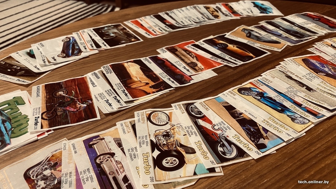 Оказывается, фантики с машинками имеют коллекционную ценность. Особенно если речь о первых выпусках — за каждый вкладыш под номером от 1 до 50 ценители дают по $100, а то и больше! Они и правда чрезвычайно редкие, потому что выходили еще в 1980-х. Мои картинки начинаются от 160-го номера (это как раз 1990 год) и заканчиваются на номере 330.