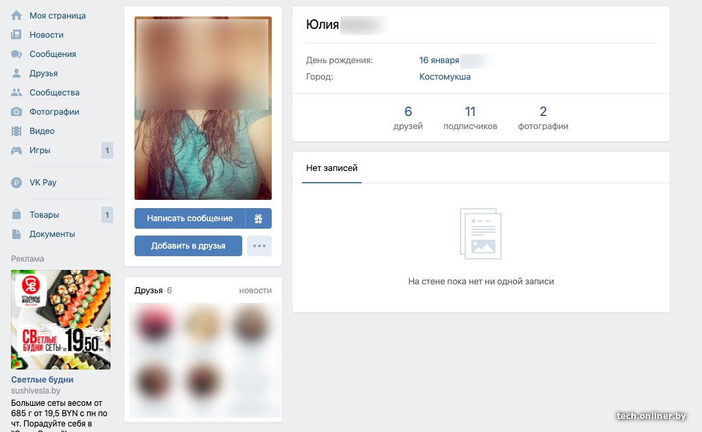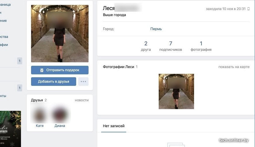 На сайте gadget-tehno.by много интересного: «Политика конфиденциальности» не кликабельна, рассрочки и кредиты продавец «временно» не предоставляет, адрес юрлица указан с ошибкой — есть только Острошицкий агрогородок, но никак не Острошитский. Само собой, на сайте обилие положительных отзывов, только их происхождение предельно сомнительное. Если поискать «покупателей» по фамилиям и именам в соцсетях, обнаружатся интересные детали. К примеру, одна девушка приехала в Минск за iPhone из Костомукшы (это аж в Карелии), а другая — из Перми.