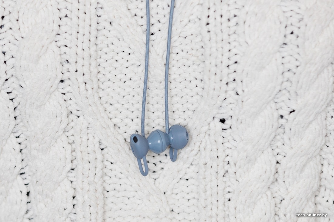 Модель, конструкция которой отличается от соперников. У Honor Sport Pro нет футляра для зарядки, а наушники соединены между собой. В области шеи наблюдается эластичный силиконовый кабель, а непосредственно к самим наушникам идет провод в тканевой оплетке.