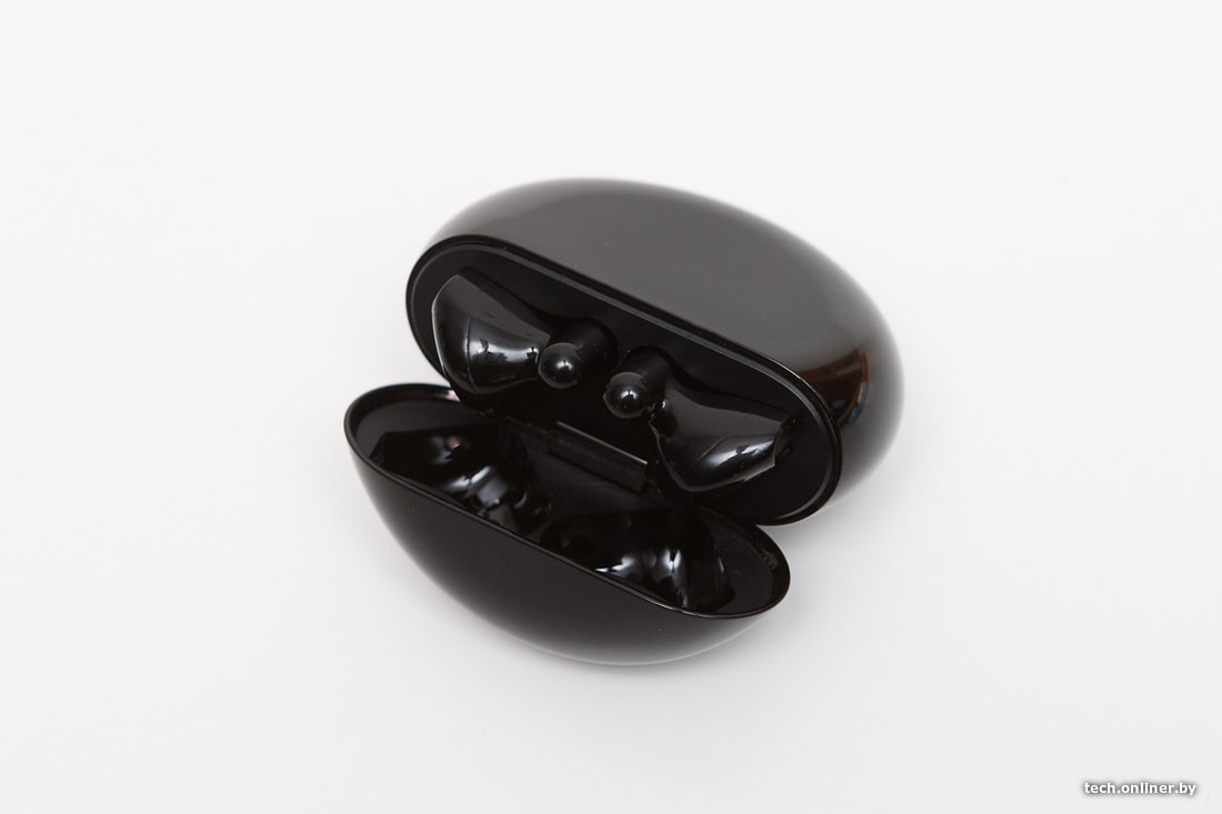Новенькие FreeBuds 3 недавно представляли в Минске. В комплекте круглый глянцевый футляр с парой наушников и кабель с USB Type-C.
