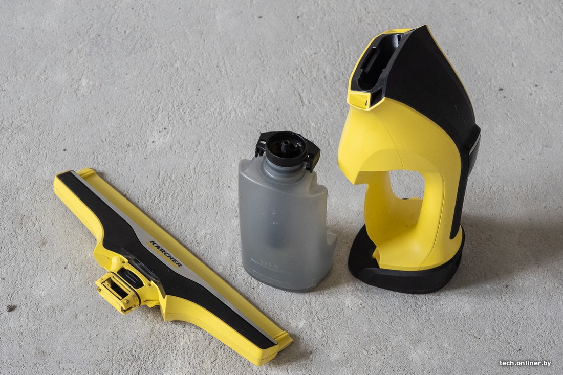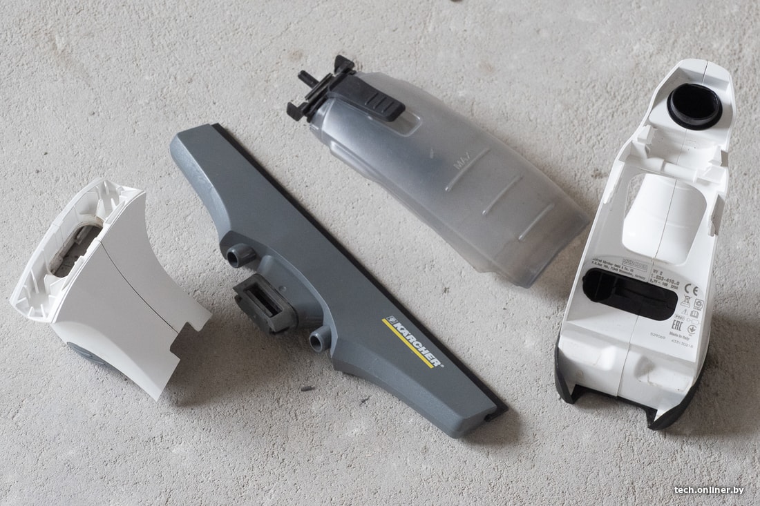 Karcher WV 2 Premium имеет съемную насадку, а для того, чтобы извлечь контейнер, необходимо снять и среднюю часть. На пылесборнике есть клапан для слива воды, разбирать устройство нужно, если вы хотите как следует помыть резервуар и резиновые элементы внутри. Очевидно, что забираться туда часто пользователь не станет.