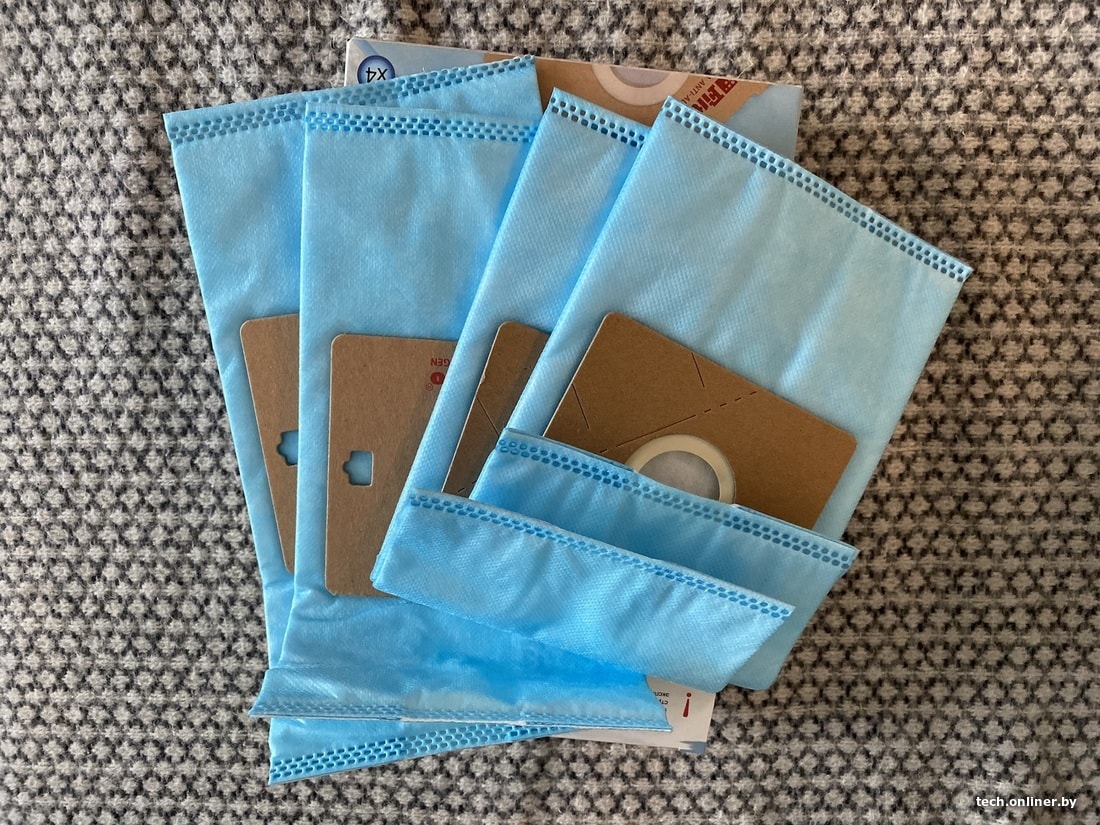 Благо ничего не успело сломаться, поэтому только и надо, что поменять прохудившийся мешок. В Каталоге Onliner нашелся подходящий комплект за 16,79 рубля. На этот раз решил быть осмотрительнее и заказал мешки не бумажные, а из синтетического волокна — такие прорваться не должны.