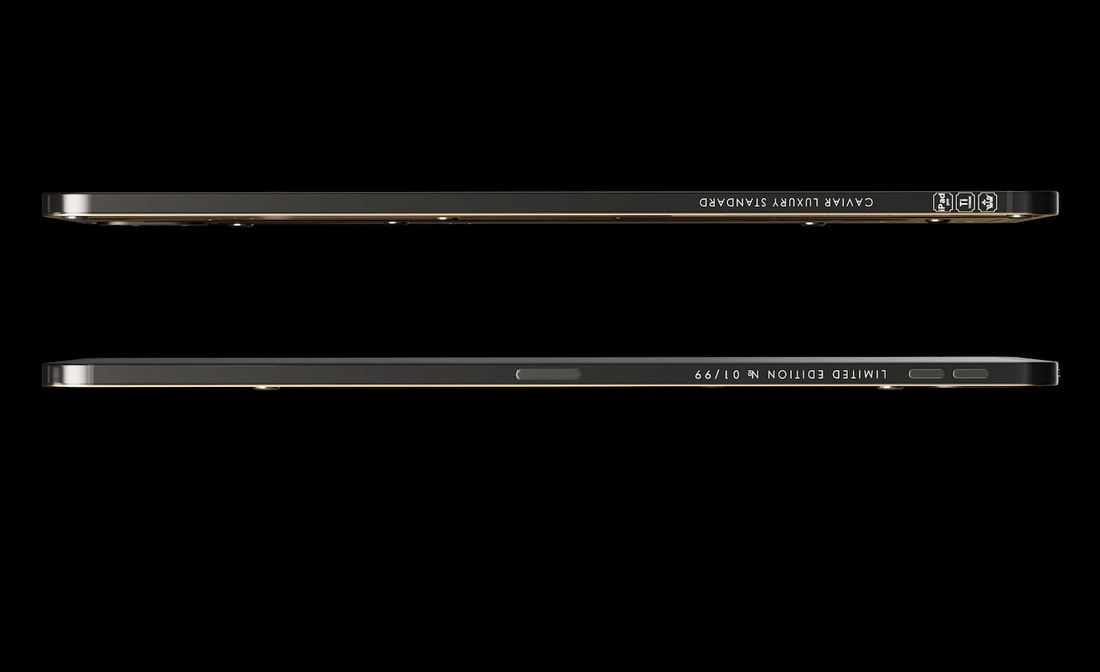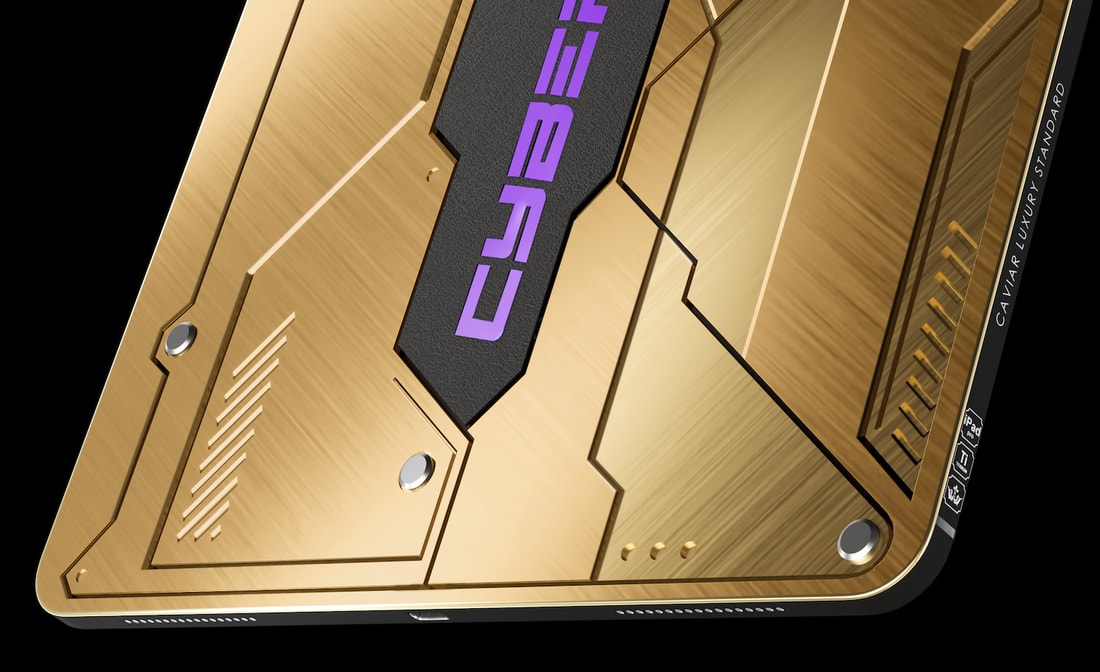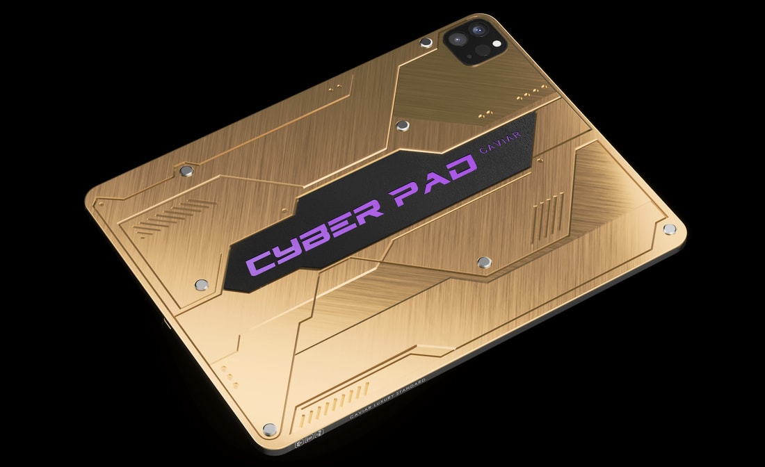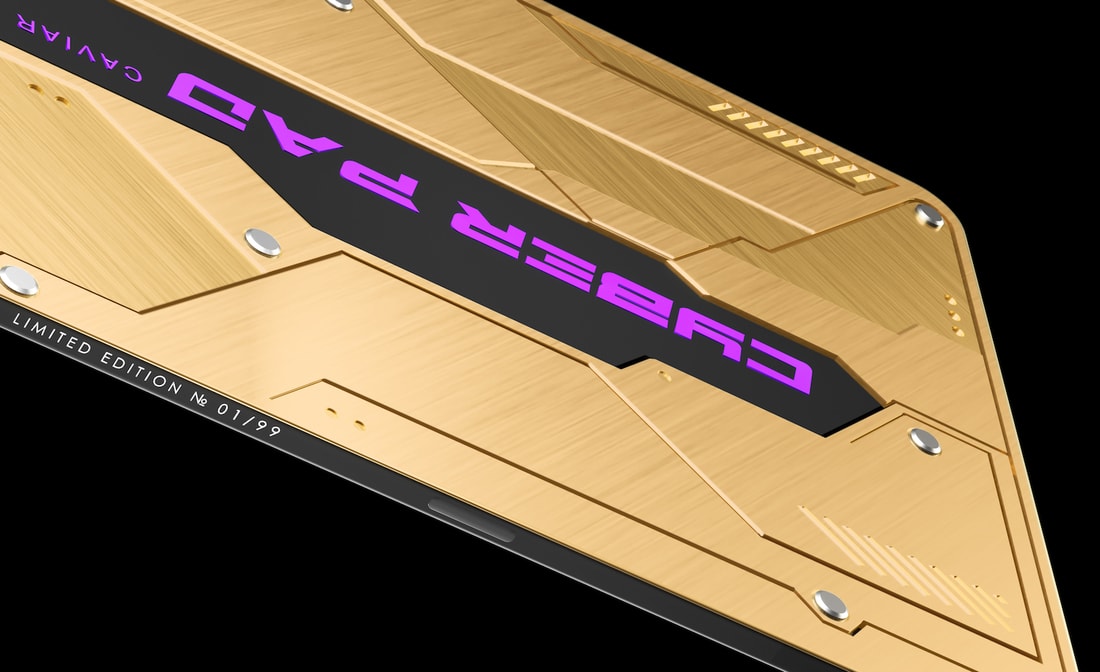 Планшет получил название Caviar Cyberpad. Корпус выполнен из закаленного титана с желтым PVD-покрытием и черного карбонового волокна. Компания отмечает, что внешний вид вторит Sci-Fi-тематике: к ней отсылают техногенные формы, геометричность линий и яркие цветовые акценты.