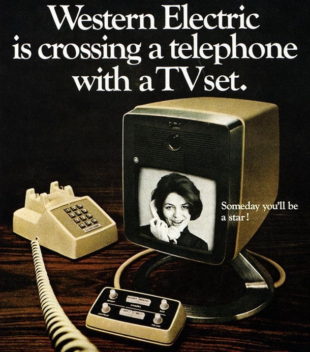 В 1960-х Bell Labs предложила свое видение видеотелефона — Picturephone. Разработка велась многие годы, появлялись различные прототипы (один, например, должен был каждые несколько секунд передавать по телефонной линии фотографии абонента). В 1964 году появился Picturephone Mod I, с помощью которого совершили трансконтинентальный видеозвонок. Затем была представлена его коммерческая версия — любой желающий мог заказать трехминутный разговор, заплатив от $16 до $27 (сегодня это $133—225 с учетом инфляции). Дорого, потому не прижилось.