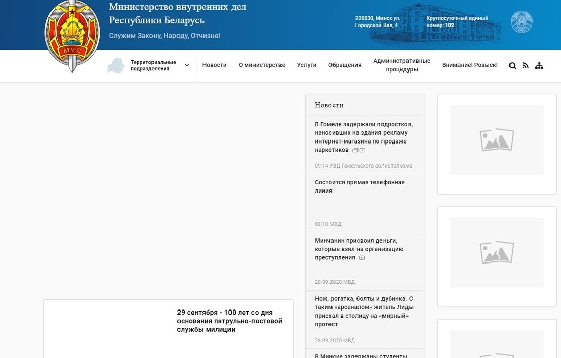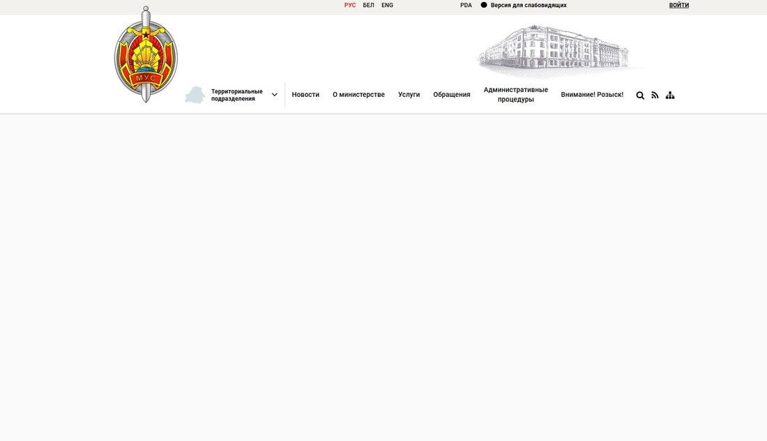 Официальный сайт МВД Беларуси работает с перебоями: на загрузку страниц уходит продолжительное время, изображения могут не отображаться, некоторые пользователи сообщают о полной недоступности ресурса. После загрузки главной страницы внутренние открываются с меньшей задержкой.