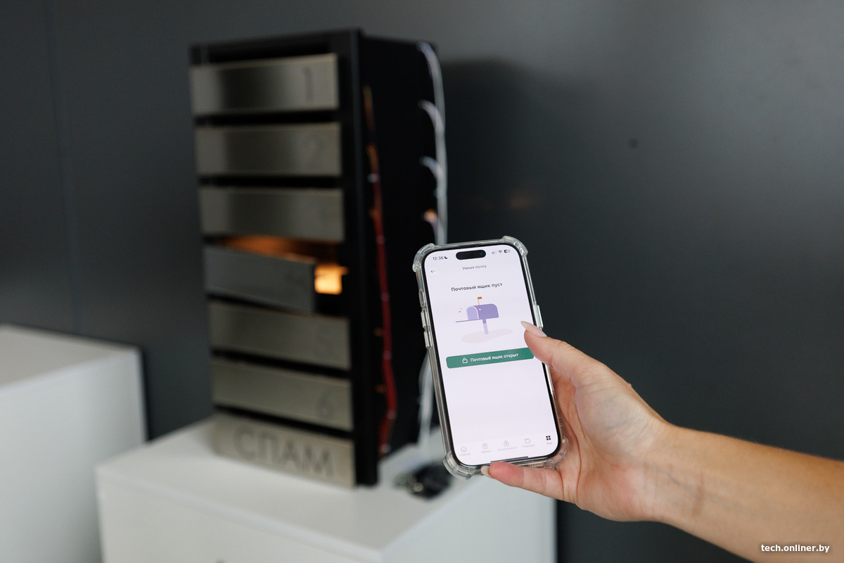 Обычный почтовый ящик требует ключа. У жильца и так целая связка — от домофона, шлагбаума, калитки. Разработчики решили, что добавлять ещё один нет смысла, и сделали открытие ящика по брелоку. Потом пошли дальше — добавили инфракрасный датчик внутри, который реагирует на появление письма: как только что-то упало в ящик, владельцу приходит уведомление на телефон.