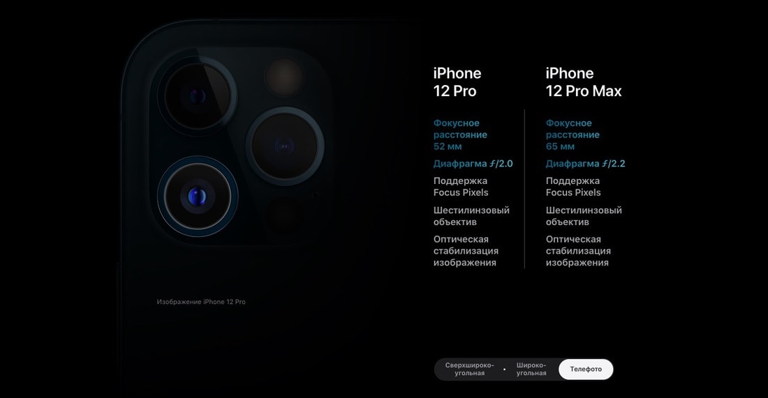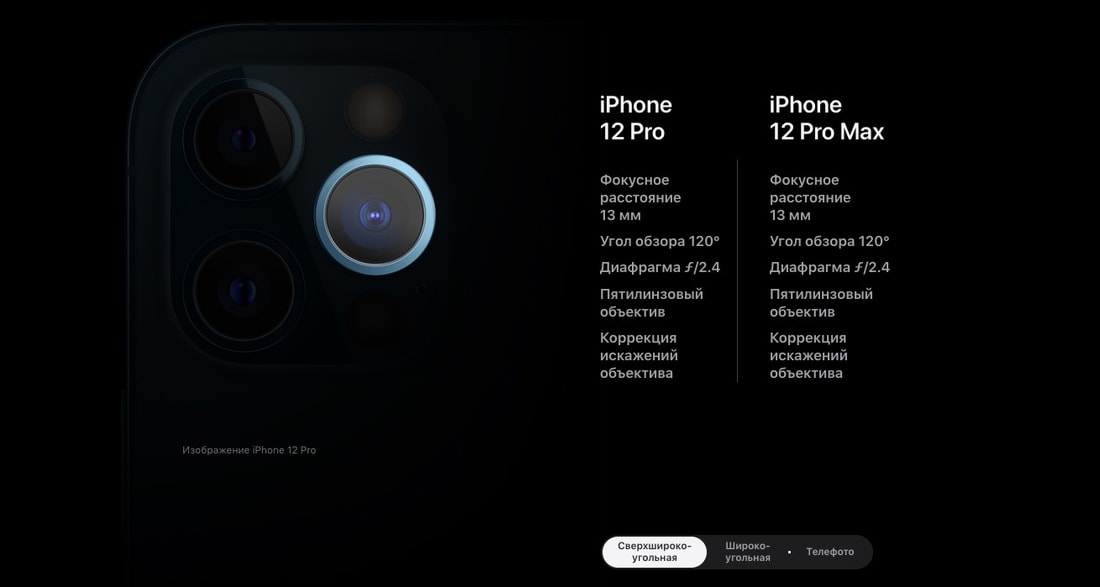 Во-вторых, третий фотосенсор — телефото с диапазоном оптического зума 5× в Pro Max (и 4× в Pro, а в iPhone 12 и вовсе 2×). Но главное нововведение в камерах Pro-моделей — LiDAR-сканер. Он определяет скорость возврата отраженного от объектов света и формирует что-то вроде карты помещения или открытого пространства. Благодаря этому даже при слабом освещении автофокус работает до шести раз быстрее. Заодно появилась новая оптическая стабилизация — она способна корректировать изображение вплоть до 5 тыс. раз в секунду. Широкоугольная камера получила увеличенную на 47% матрицу. Все это позволило улучшить качество съемки видео на 87% в случае с iPhone 12 Pro Max при слабом освещении.
