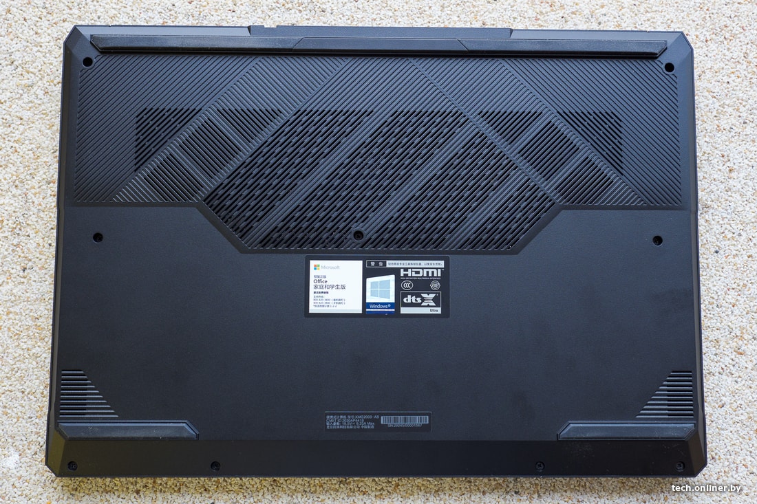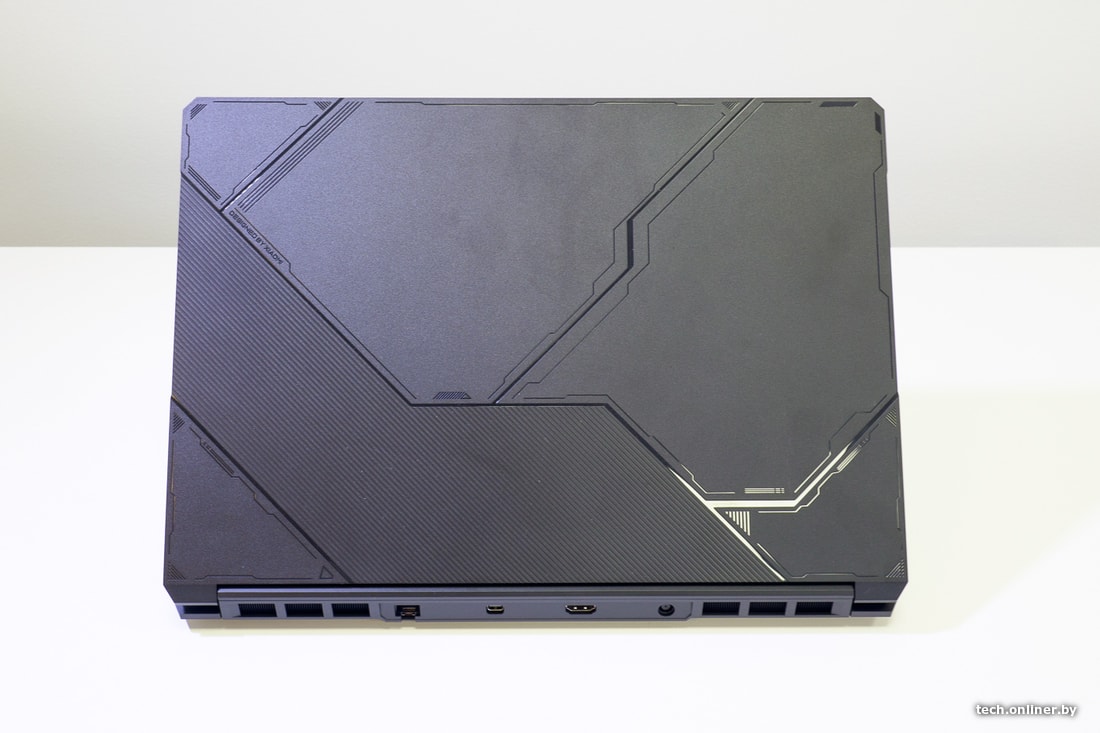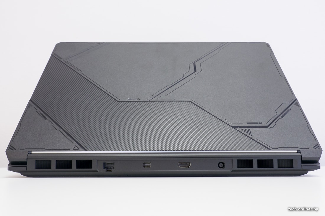 Среди полосок на крышке красуется надпись Designed by Xiaomi, как и на других ноутбуках Redmi. При первом знакомстве с ним промелькнула ассоциация с игровыми ASUS, особенно в части клавиатуры и оформления крышки. Может, показалось. Впрочем, оригинального в дизайне и правда мало (не считая 16-дюймового экрана). Те или иные элементы можно встретить почти в любом игровом ноуте. Так, редко используемые порты вынесены на заднюю часть корпуса: HDMI, mini DisplayPort, Ethernet и разъем питания. Для периферии доступно три USB порта, включая один USB 2.0, а также USB-C с поддержкой DisplayPort.