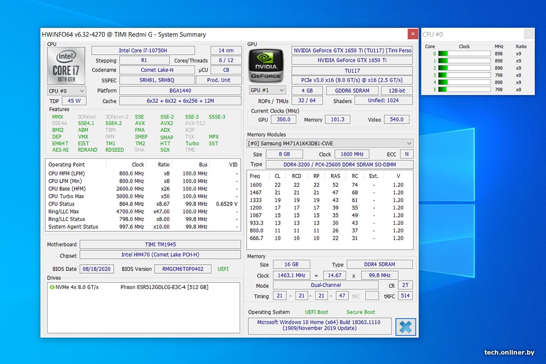 На обзор ноутбук попал в максимальной конфигурации. Вся линейка игровых Redmi работает на новых процессорах Intel 10-го поколения, включая Core i7 с частотой до 5 ГГц. Естественно, он на такой частоте в базовых настройках не работал хоть сколько бы длительное время. Видеокарты в этих ноутбуках ограничены лишь двумя версиями с 4 ГБ памяти — GTX 1650 (пока непонятно, GDDR5 или GDDR6) и 1650 Ti. И вот в этом как раз и кроется главная проблема ноутбука. В версии с Core i7 и 1650 Ti ноутбук стоит очень дорого. Может, это как-то оправдано производительностью?