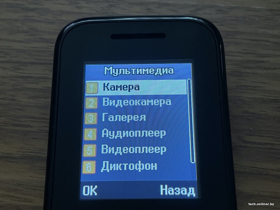 Например, есть целый раздел «Мультимедиа» с диктофоном, аудио- и видеоплеером (!), а также видеокамерой (!!!). Для всего этого добра нужна карта памяти. А для радио — наушники. Зато интернета совсем-совсем не нужно. Энергонезависимой памяти нет совсем, то есть если аккумулятор разрядится или вы вздумаете поменять «симку», то придется заново настраивать время и дату.