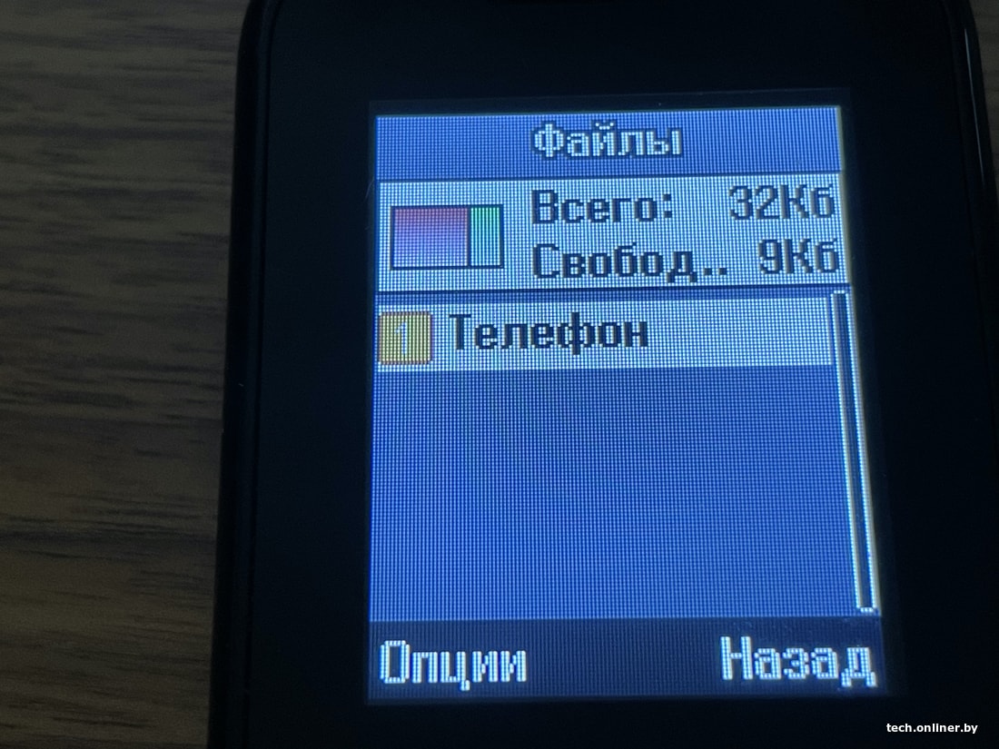Для насущных потребностей производитель выделил 32 КБ. Проверено экспериментально: этого хватит на две фотографии с разрешением 128×160 пикселей. Можно шикануть и выбрать разрешение 240×320 точек — тогда можно сохранить один любимый снимок. Также на телефон можно записать 700 контактов и хранить 300 SMS. Но не забывайте, что под эти нужды можно и SIM-карту приспособить.