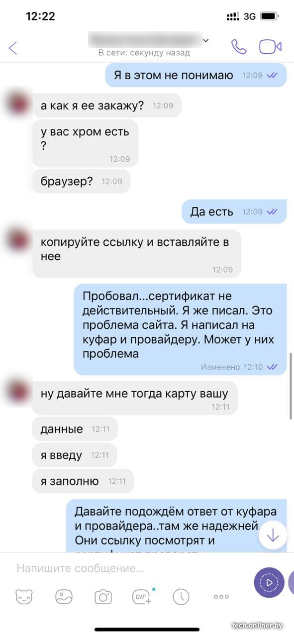 Однако на горизонте новая напасть: тех, кто не сдается, оставаясь при своих деньгах, зовут принять участие в «разводе» других. Мы уже рассказывали о подобных случаях ранее, и вот снова аналогичная ситуация. Начинается она стандартно: «покупатель» якобы интересуется товаром, затем начинает рассказывать истории о курьерской службе и необходимости ввести данные карты для получения денег на каком-то «левом» сайте.