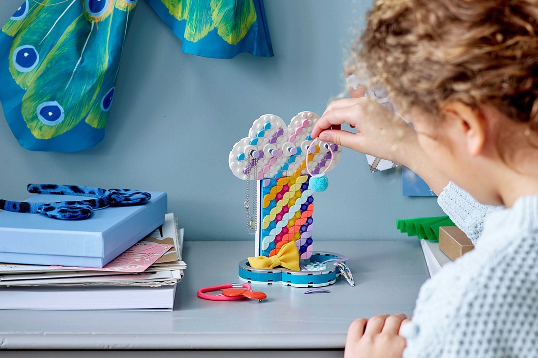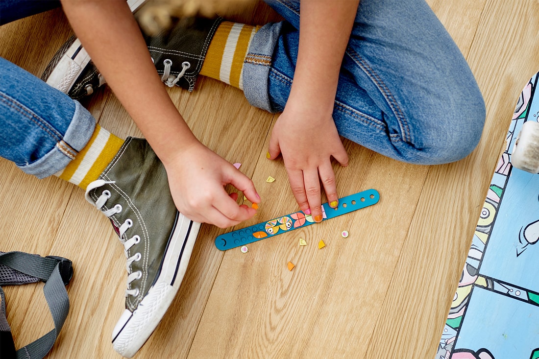 Для чего нужны плитки Lego Dots? Из них можно сделать браслет для себя или в подарок, можно украсить любую модель конструктора, шкатулку или фоторамку. Комбинировать плиточки можно на свое усмотрение, что дает полную свободу для творческих маневров. В наборе вместе с браслетом идет 33 плиточки, а дополнительно можно взять еще 109 плиток и подставку для собранных украшений.
