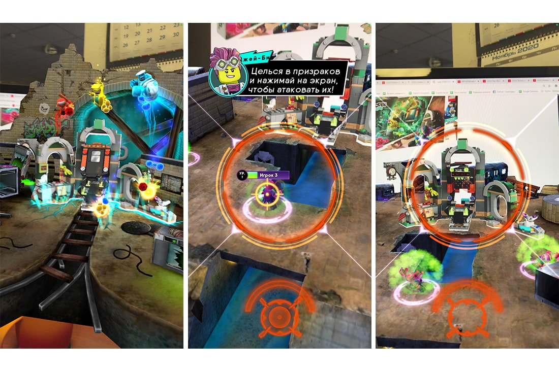 В 2019 году появились первые наборы с поддержкой дополненной реальности — это была серия Hidden Side о двух блогерах, чей город захватили призраки. На собранный на столе конструктор наводится смартфон, и на его экране вокруг Lego начинают появляться дополнительные текстуры, новые элементы на деталях, и из параллельного мира вылезают те самые призраки. Все очень ярко, красочно и с прикольной анимацией.