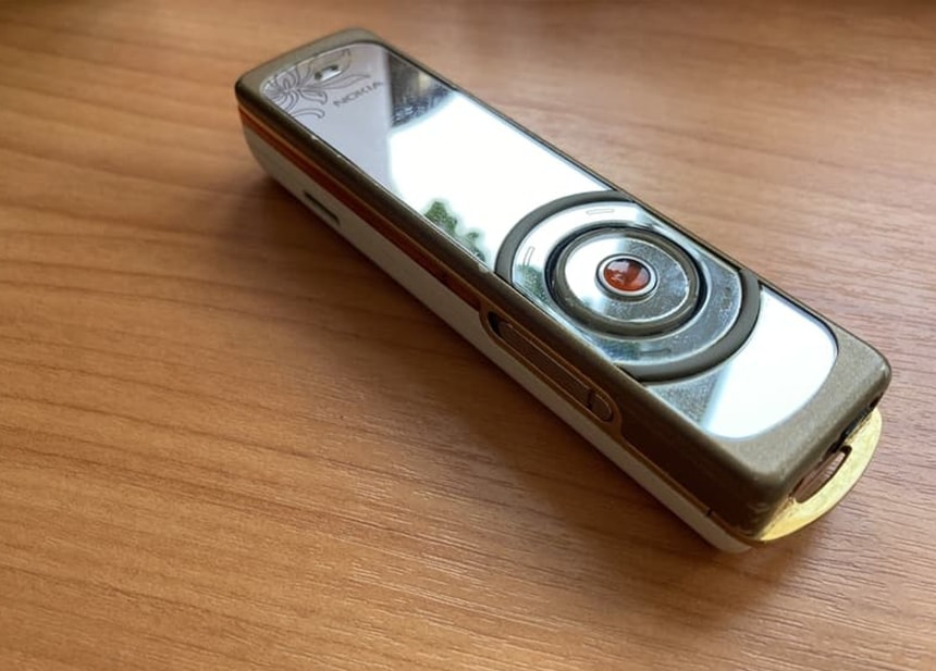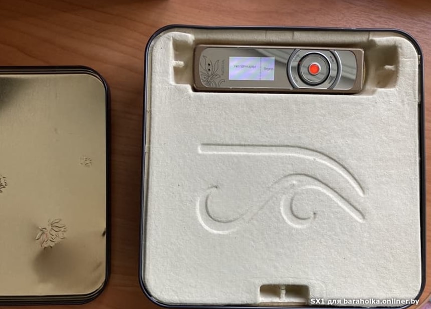 Nokia показала золотую премиум-версию популярного слайдера 8800 в далеком 2008 году. Телефон, украшенный 18-каратным золотом и вставками из белой кожи, сейчас продается на «Барахолке» за 500 рублей. С точки зрения характеристик «лакшери-версия» 8800 получила серьезные обновления по сравнению с базовой моделью. Внутренняя память расширилась до 4 ГБ, появился OLED-экран с разрешением 240×320 и камера на 3,2 Мп. Вариант с «Барахолки» оформлен к тому же в крокодиловую кожу. Смотрится стильно и по-богатому. Автор пишет, что состояние 9 из 10 и все работает.