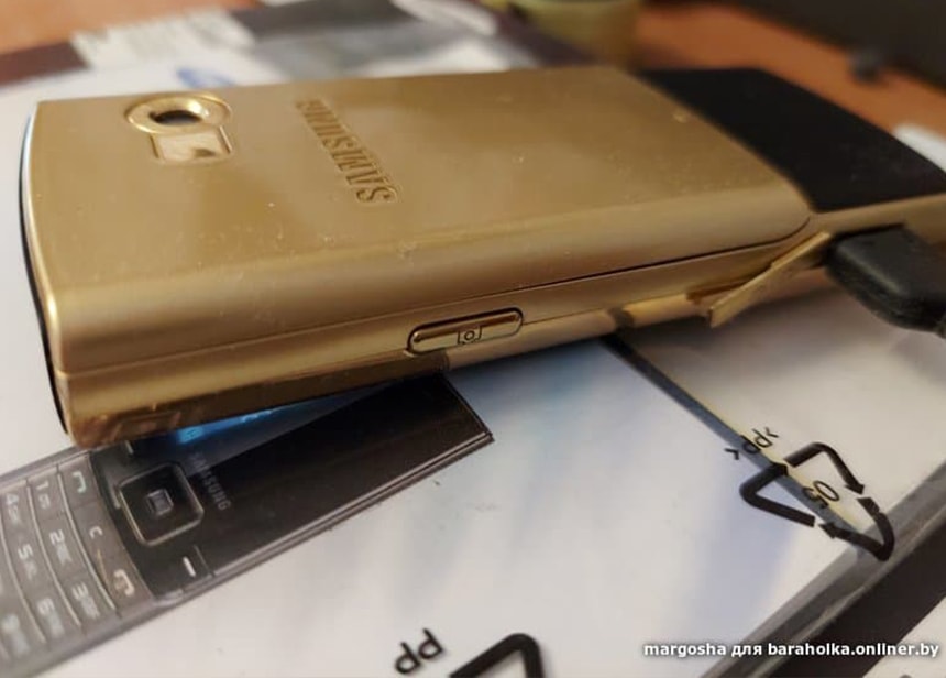 Очень популярна была в наших краях модель двухсимочного телефона, впервые представленного в мае 2008 года. На «Барахолке» продают ее золотую версию. Судя по фото, состояние хорошее. Минимум потертостей, максимум золотистости. В комплекте оригинальная зарядка и дополнительный аккумулятор.