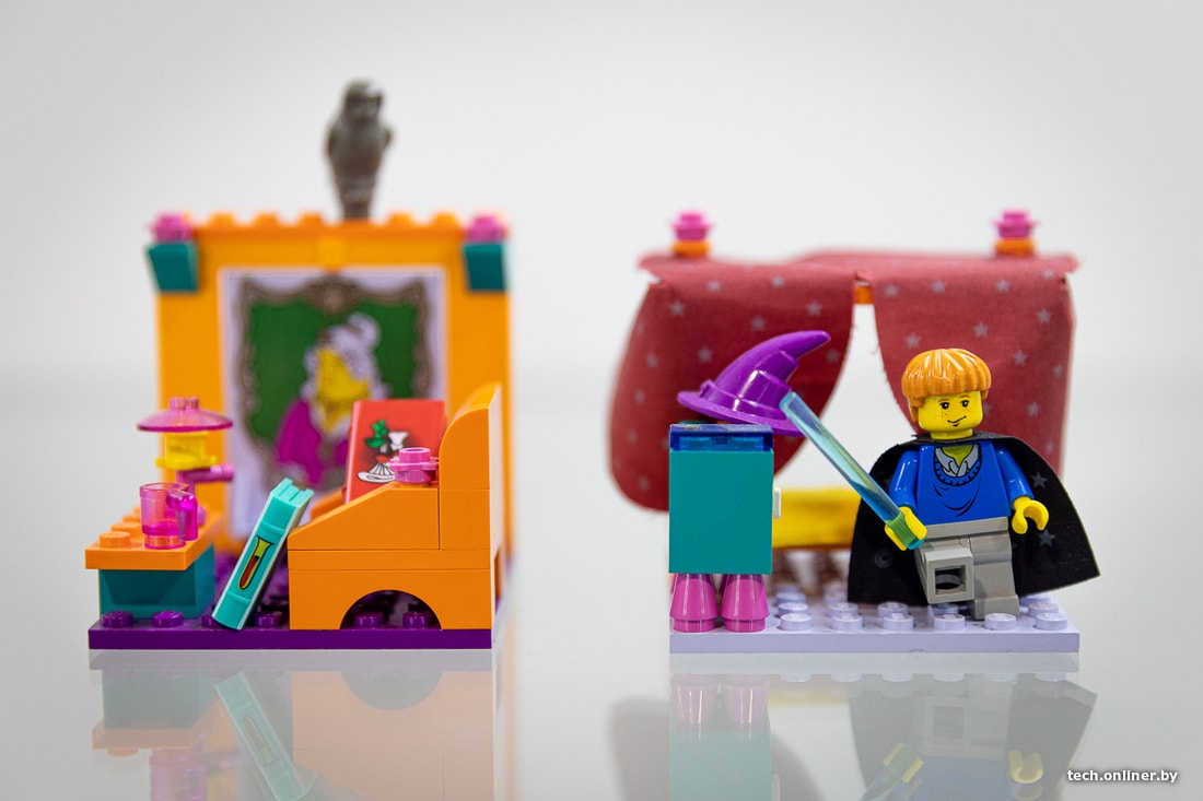 В наборе вместо классических фигурок используются их микроверсии, чтобы лучше передать мощь и величие замка Хогвартс. Кроме 4 уникальных фигурок основателей Хогвартса, которых нет ни в одном наборе этой серии Lego, — Годрик Гриффиндор, Пенелопа Пуффендуй, Салазар Слизерин и Кандида Когтевран. У последней, кстати, на голове изображена диадема, которая потом стала крестражем Волан-де-Морта.