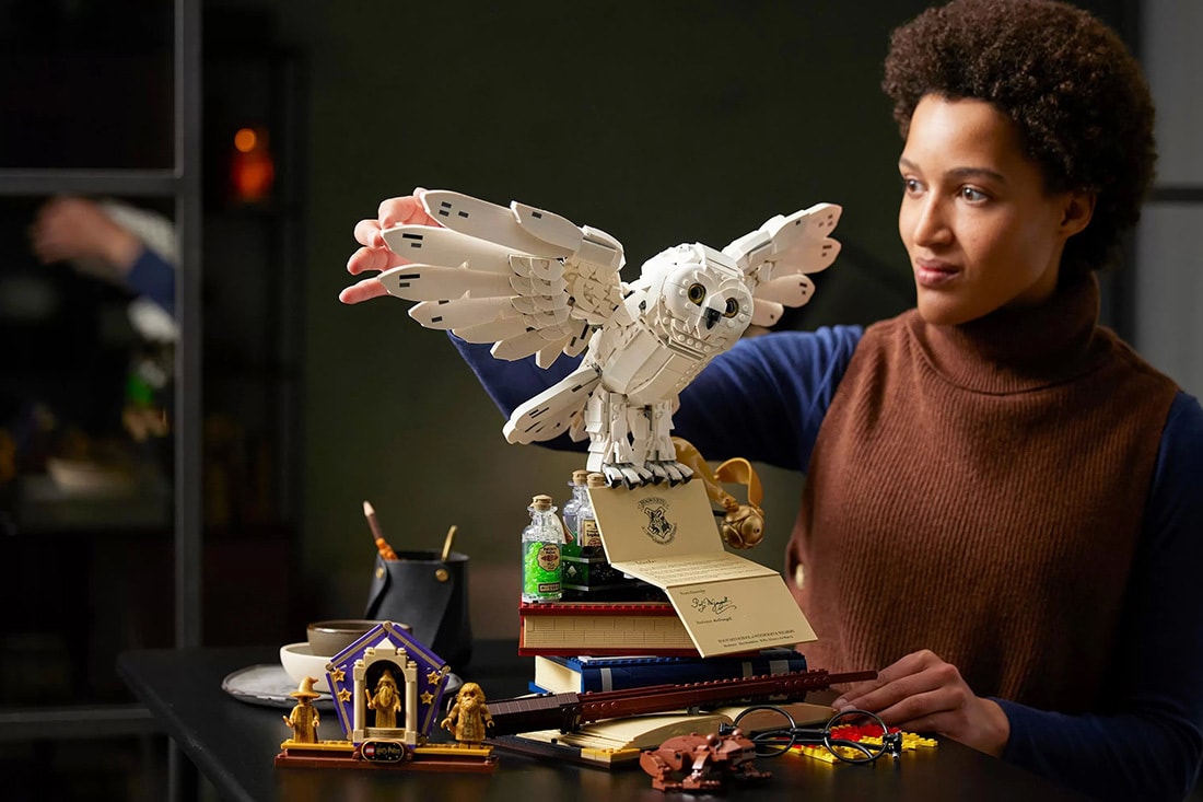 В прошлом году в продаже появилась большая фигурка Букли, верной совы Гарри Поттера. Вещь коллекционная, поэтому игровых элементов у нее нет. Единственная подвижная часть — крылья, взмахи осуществляются с помощью ручки. Сова изображена в полете и держит в когтях важное письмо. В 2020-м также вышла реинкарнация набора 2002 года, посвященного побегу Гарри Поттера из дома Дурслей по адресу Тисовая улица, 4. На фото ниже можно увидеть, насколько лучше проработана новинка.