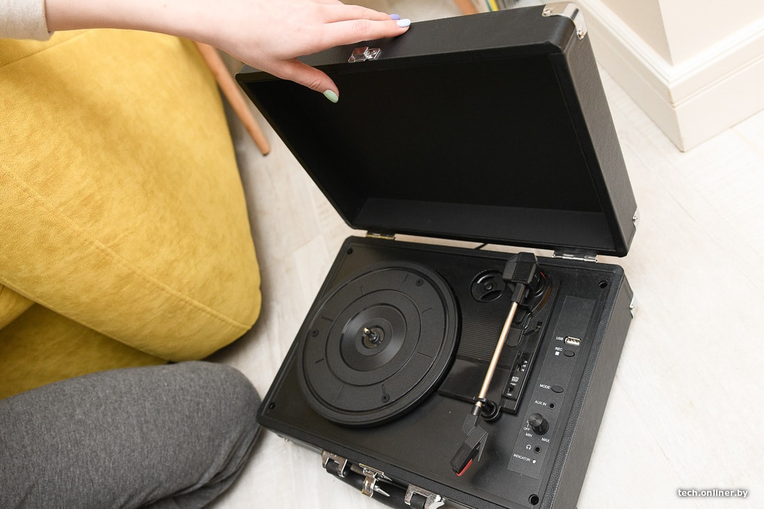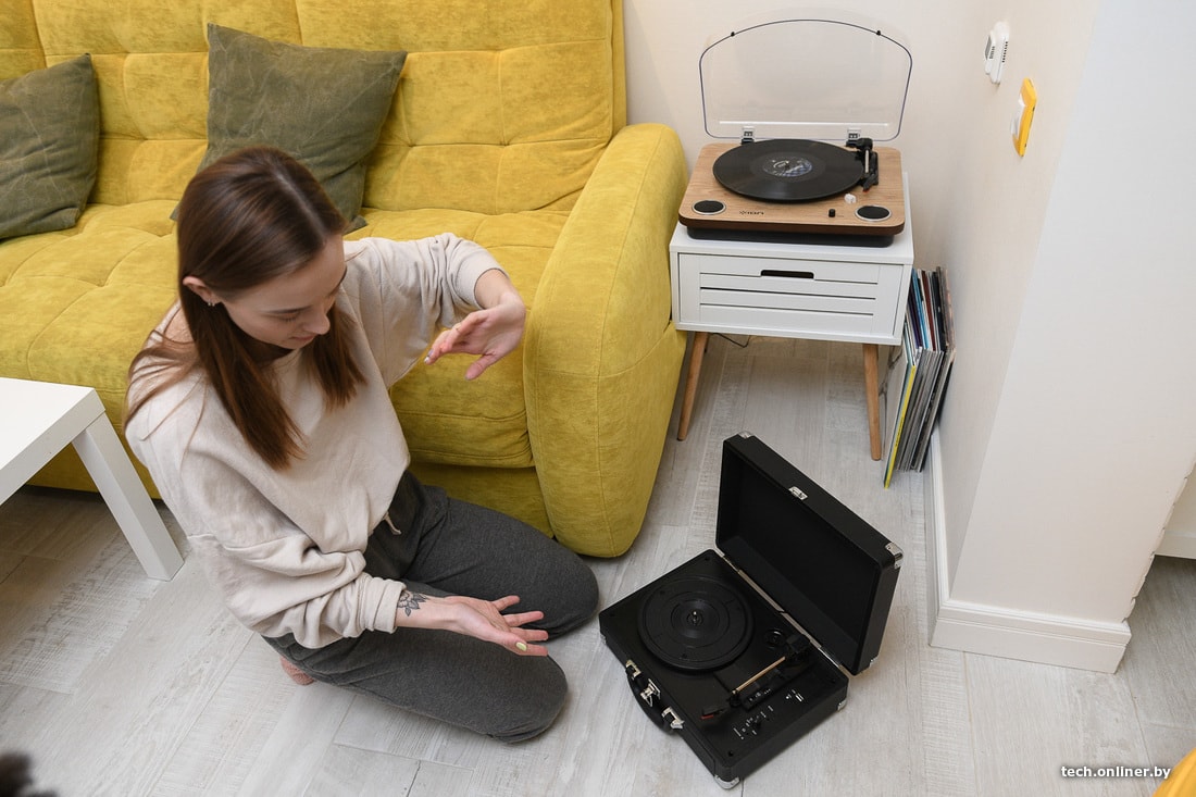 — Они выпускали духи в коллаборации с Дуой Липой (британская певица. — Прим. Onliner) и назвали их Libra. Компания прислала портативный бокс, в котором были проигрыватель, парфюм и пластинка с песней, которую Липа написала для этого аромата. Проигрыватель неплох, но какой-то он слегка хлипкий. И хотя здесь можно выбирать скорость, все равно на тяжелых пластинках проигрывание шло некорректно.