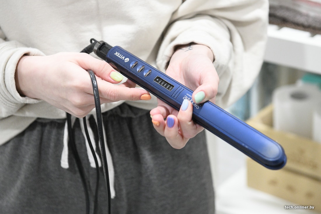— Все началось с того, что в рамках одного проекта меня ужасно постригли в парикмахерской. Я не знала, что делать с волосами. Единственный способ хоть как-то взглянуть на себя без слез — крутить волосы каждый день. Пошли в магазин и купили, кажется, одну из самых дешевых плоек — это Vitek. Я решила, что для обучения подойдет. И она у нас уже года три, не меньше.