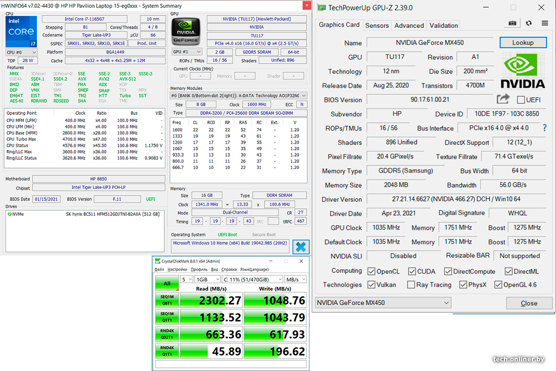 15.6" 1920 x 1080, IPS, 60 Гц, Intel Core i7 1165G7, 16 ГБ DDR4, SSD 512 ГБ, видеокарта NVIDIA GeForce MX450 2 ГБ, без ОС, цвет крышки серебристый, аккумулятор 41 Вт·ч