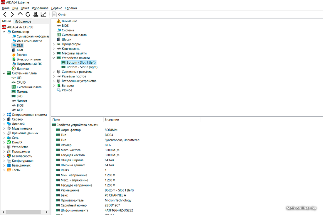 С новым ноутбуком на Ryzen 5 странное дело. Программы для мониторинга и диагностики не видят слоты памяти, хотя официальные спецификации и сервисное руководство сообщают о наличии двух слотов. AIDA64 в разделе DMI видит два модуля Micron по 8 ГБ форм-фактора SODIMM. Раздел SPD — пустой. Разобрать ноутбук нельзя.