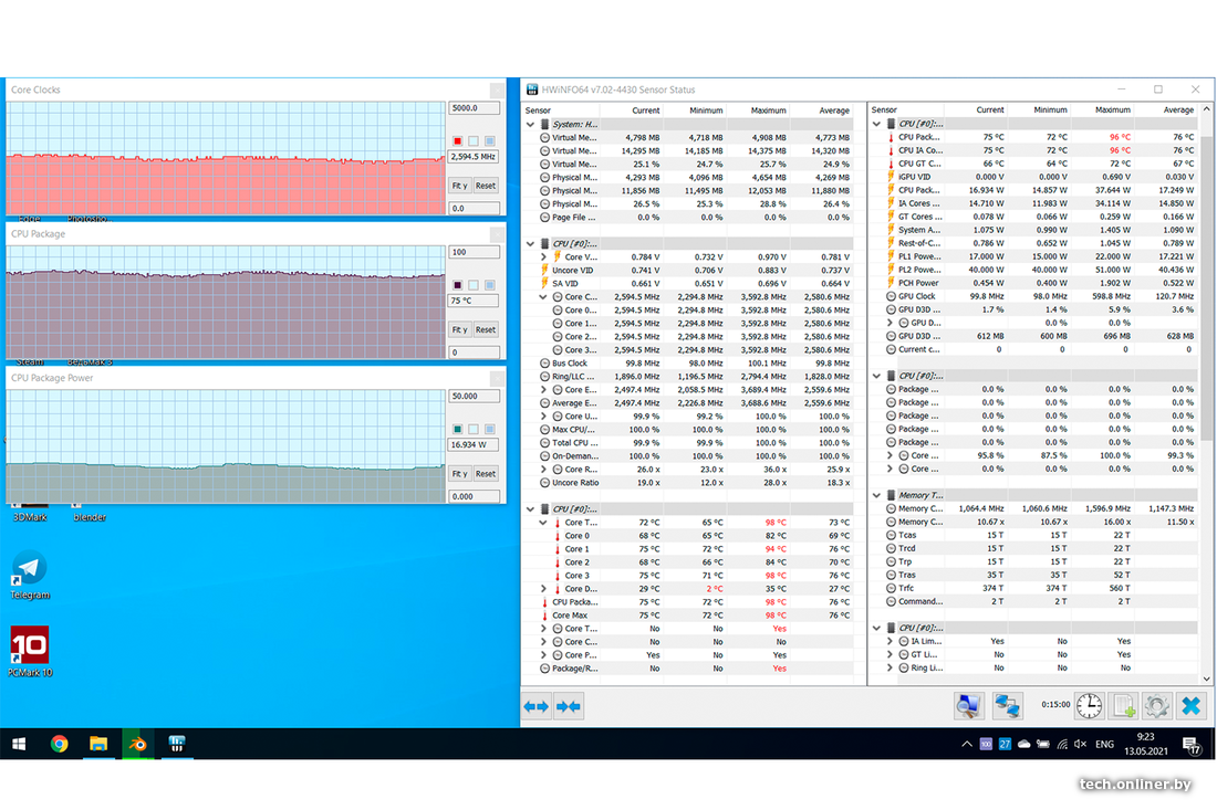 Серьезная практическая нагрузка выпала на Blender — программу для создания 3D-графики. Ноутбуки сравнивались по финальному времени рендеринга демосцен Barcelona и Classroom на движке Cycles. Ниже результаты на графиках и показания датчиков в ноутбуках во время теста, снятые примерно в равные промежутки времени.