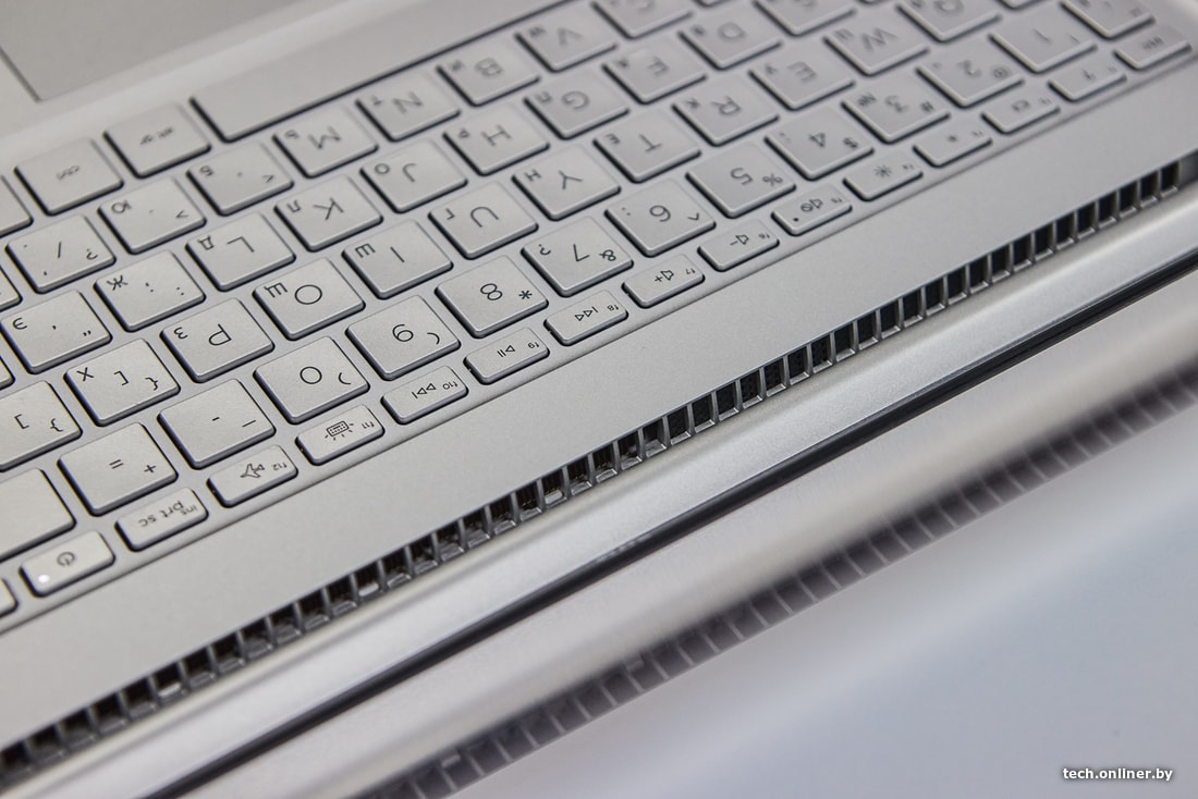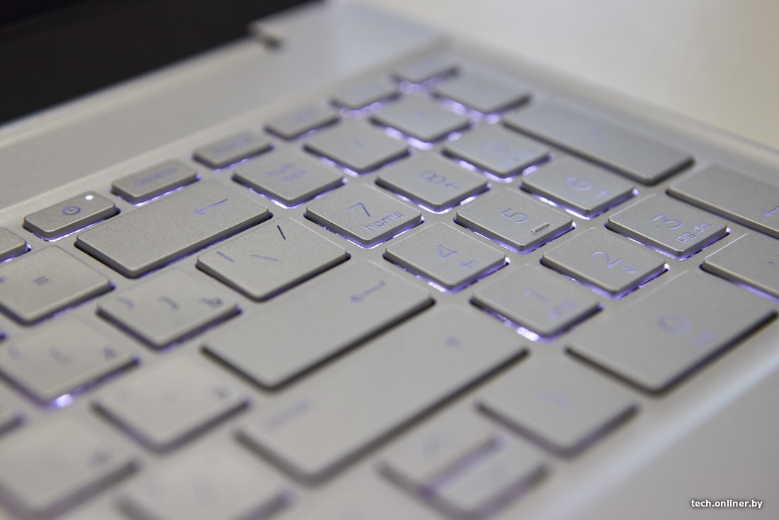 Клавиатура во всех ноутбуках отличная. Печатать на ней очень приятно. Клавиши тихие, с твердым тактильным откликом и низким ходом. Есть цифровой блок. Навигационные стрелки «Вверх» и «Вниз», как обычно в современных ноутбуках, уполовинены. Все модели также оснащены двухуровневой подсветкой.