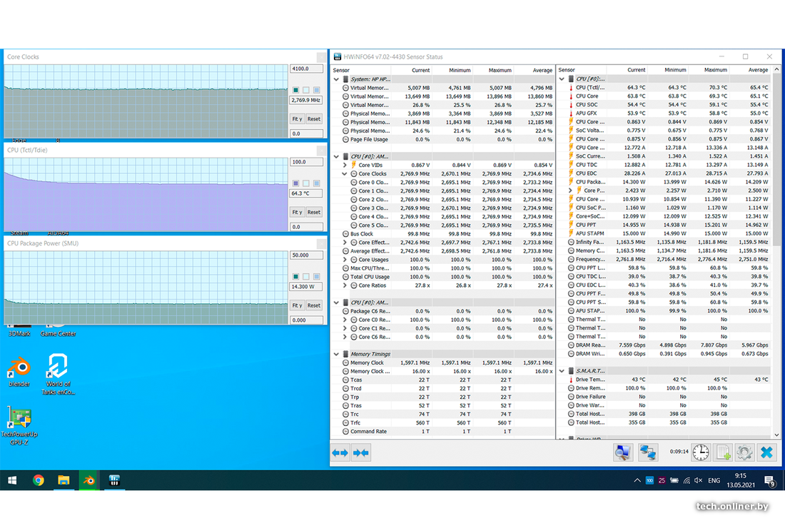 А что с нагревом? Если посмотреть на тот же Blender, то самыми горячими были ноутбуки на процессорах Intel — 77—78 градусов в среднем. Процессор Ryzen 5 4500u в ноутбуке HP держал среднюю температуру 75°. Самыми холодными были ноутбуки на новом Ryzen 5 и прошлогоднем Ryzen 7 — 65° и 59° соответственно.