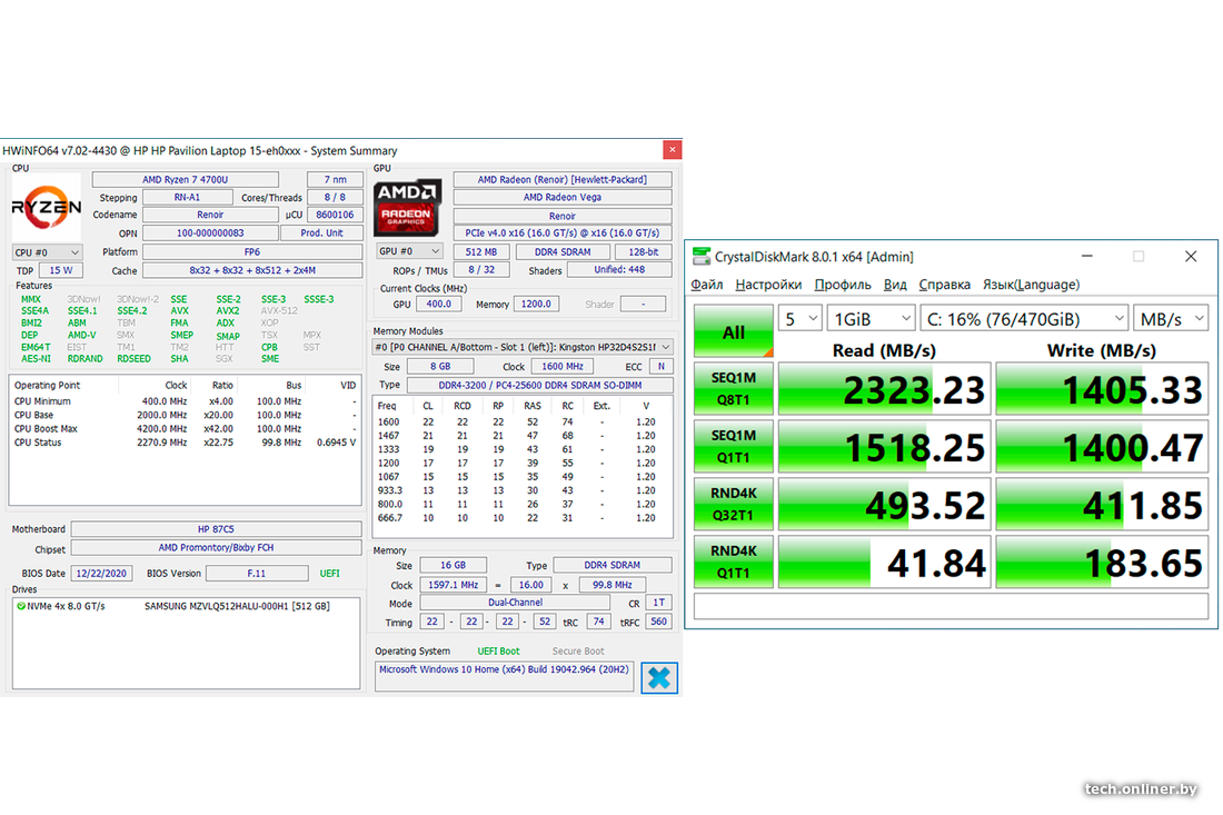 15.6" 1920 x 1080, IPS, 60 Гц, AMD Ryzen 7 4700U, 16 ГБ DDR4, SSD 512 ГБ, видеокарта встроенная, без ОС, цвет крышки серебристый, аккумулятор 41 Вт·ч