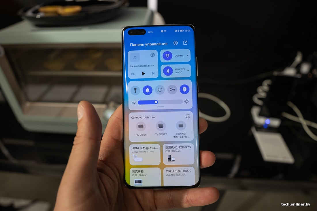 Панель управления HarmonyOS позволяет создавать суперустройства из нескольких гаджетов по концепции One as all — all as one: например, объединять несколько отдельных беспроводных колонок в сеть или комбинироваться между музыкальными колонками / экранами Huawei Vision. Также можно выводить видео и аудио на разные устройства.