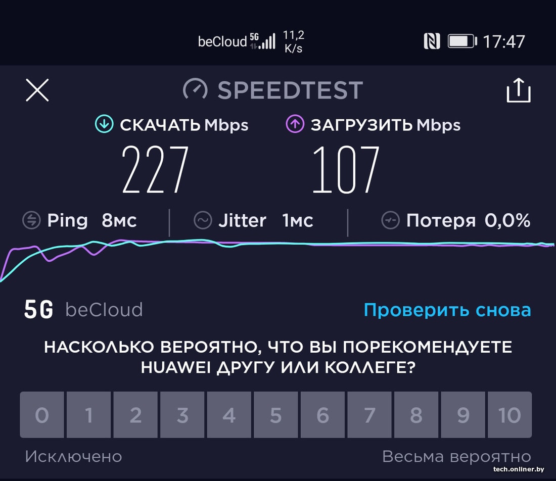 Компания beCloud предоставила журналисту Onliner смартфон с 5G, но главное — с «симкой», обеспечивающей подключение к этой сети. На прошедшей накануне пресс-конференции была показана карта уже проведенного тестирования сети, в самые «жирные» места, где наверняка должна быть связь, мы и отправились (в частности, замеры проводились на ул. Немиге, Богдановича, Коммунистической, пл. Победы, Сторожевской, пр. Победителей и Машерова, ул. Куйбышева, Бядули и некоторых других).