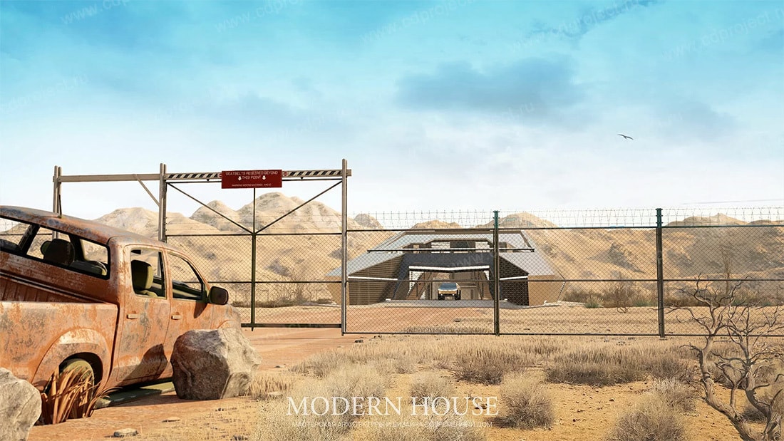 Как говорится в описании, Cyberhouse — это концептуальный архитектурный проект, интерпретирующий идеи Илона Маска. Он представляет собой многоуровневый бункер, который можно эксплуатировать как после ядерной атаки, так и в случае нашествия зомби. Монолитный бетон и сталь, а также наклонные плоскости стен должны минимизировать внешнее воздействие (механическое и электромагнитное), а помогут им в этом шлюзовые двери и бронированные окна с усиленными жалюзи.