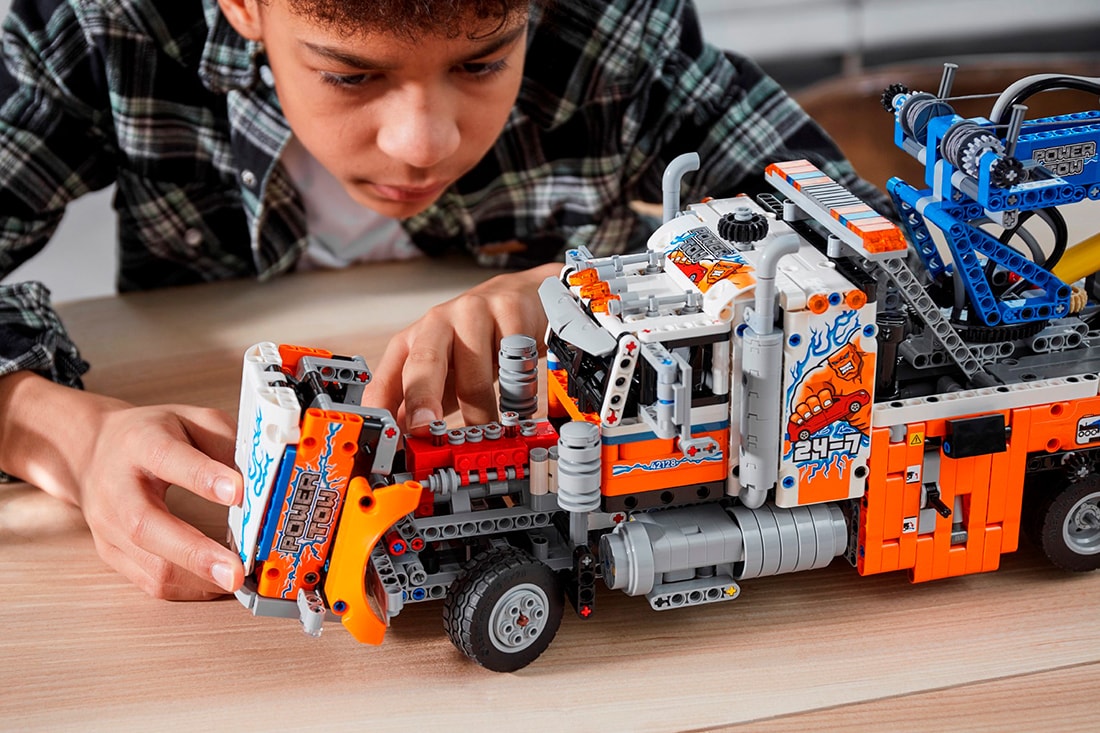 «Грузовой эвакуатор» — это 2000 деталей классического набора LEGO Technic, и он точно будет одним из самых желанных подарков в этом году. В обзорах хвалят модель за интересную сборку и много продуманных механизмов внутри. В длину эвакуатор получается 58 сантиметров. Для набора характерен красивый выбор цветов с контрастом оранжевого, белого и синего. Есть привод на две задние оси, установлено два дифференциала. В лучших традициях LEGO Technic у эвакуатора много функций: открывается капот, где виден двигатель, поднимается третья дополнительная ось, опускаются опоры, с помощью пневматики поднимается кран, выдвигается его стрела с лебедками, опускается задняя сцепка. При умелом подходе все функции эвакуатора можно моторизовать.