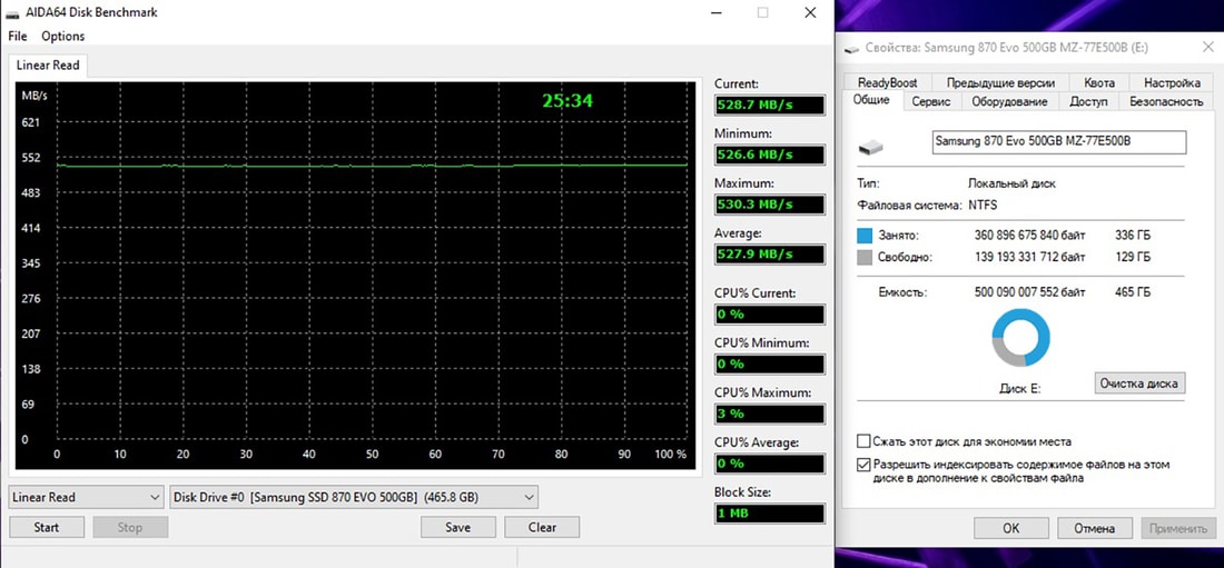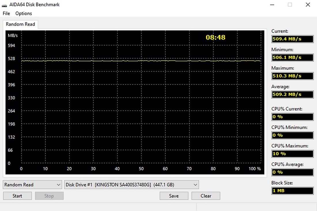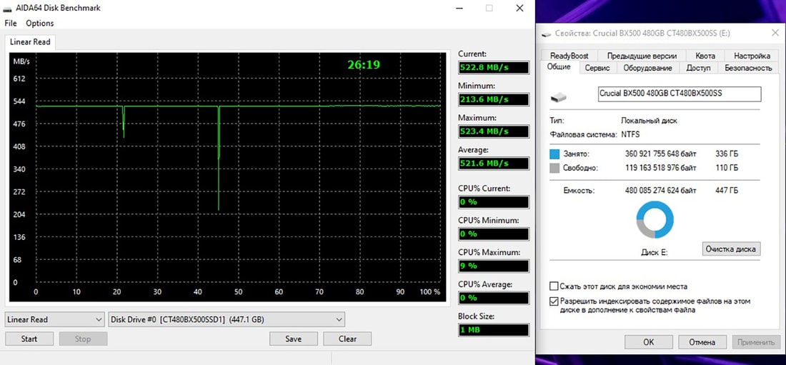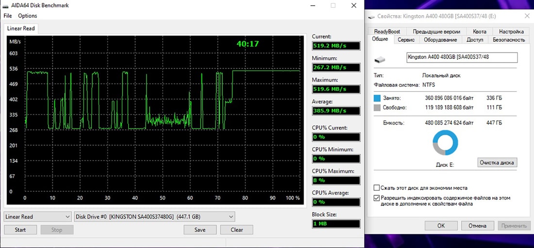 Линейное чтение с заполненного накопителя вызвало странное поведение только у Kingston A400. Остальные накопители вели себя предсказуемо.
