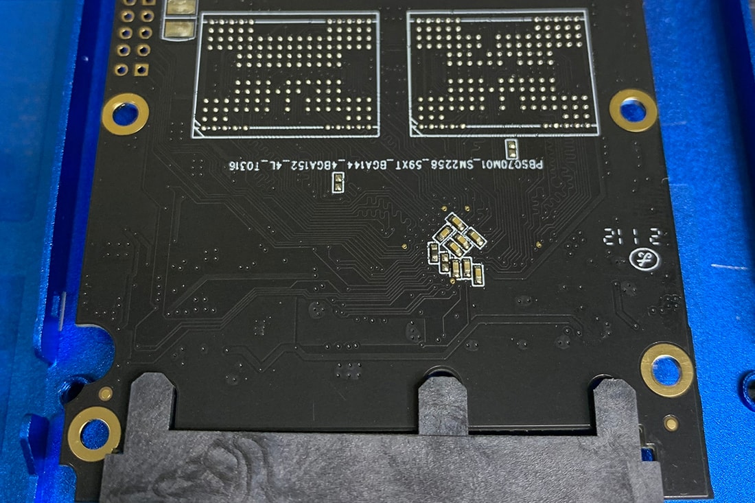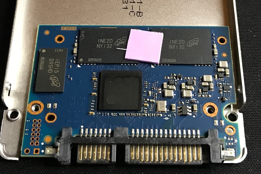 У всех накопителей платы весьма компактные, если сравнивать актуальное состояние с эпохой прихода SSD в потребительский сегмент. Дефектов монтажа не замечено, все очень аккуратно. Конденсаторов защиты от перебоев питания и утраты данных ни на одном из накопителей не обнаружено, но и сегмент потребительский. Термопрокладки, пусть и в каком-то странном исполнении, «чтобы были», присутствуют только у накопителей Crucial — как у флагманского, так и у бюджетного. Samsung и Netac обходятся одним чипом NAND и односторонним размещением соответственно. Все остальные накопители имеют двустороннее размещение чипов на плате.