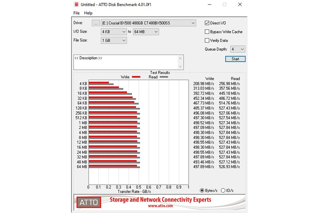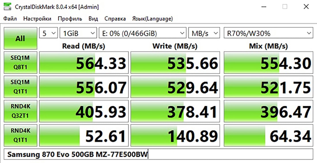 В данной утилите «отличился» BX500 — просели показатели 4K Read. Остальные параметры — в рамках общего хода тестирования. Перейдем к более тяжелой нагрузке.