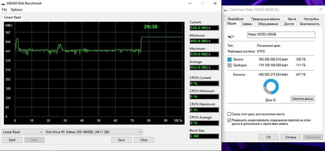 | Емкость фактическая | 447 ГБ | 465 ГБ | 447 ГБ | 447 ГБ | 465 ГБ | 447 ГБ |