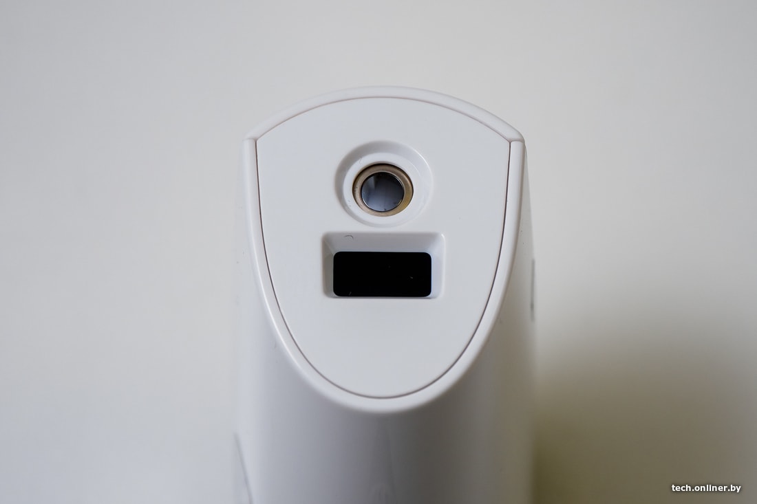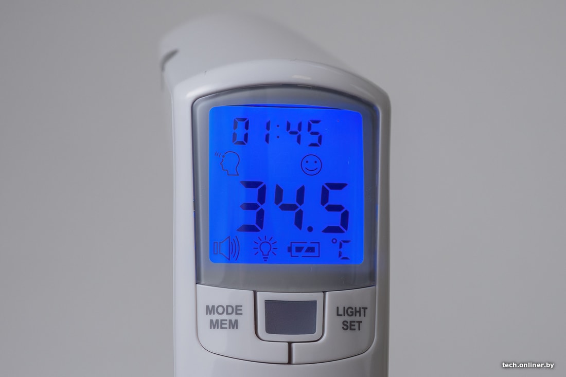 Градусник срабатывает за три секунды. Если выбрать неверное расстояние от сенсора до лба, на экране появится соответствующая индикация, а также запиликает встроенный динамик: измерять он не будет. Спустя несколько замеров самому себе проблема решается. Устройство крупное, внутри в процессе работы слышно щелканье сенсора — на работу это не влияет.
