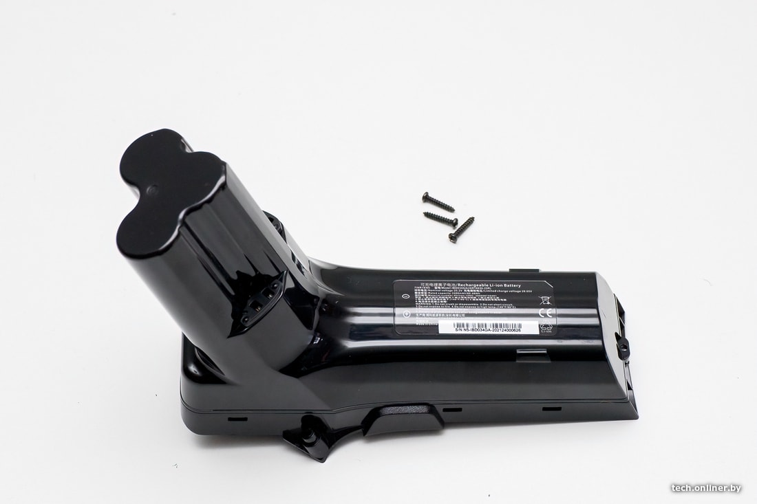 На самом деле аккумулятор достаточно миниатюрный, и «запихнуть» туда 2400 мАч тянет на маленький подвиг. А еще здорово, что инженеры максимально использовали свободное место внутри корпуса, благодаря чему снаружи пылесос выглядит максимально лаконично. Правда, есть еще пылесборник...
